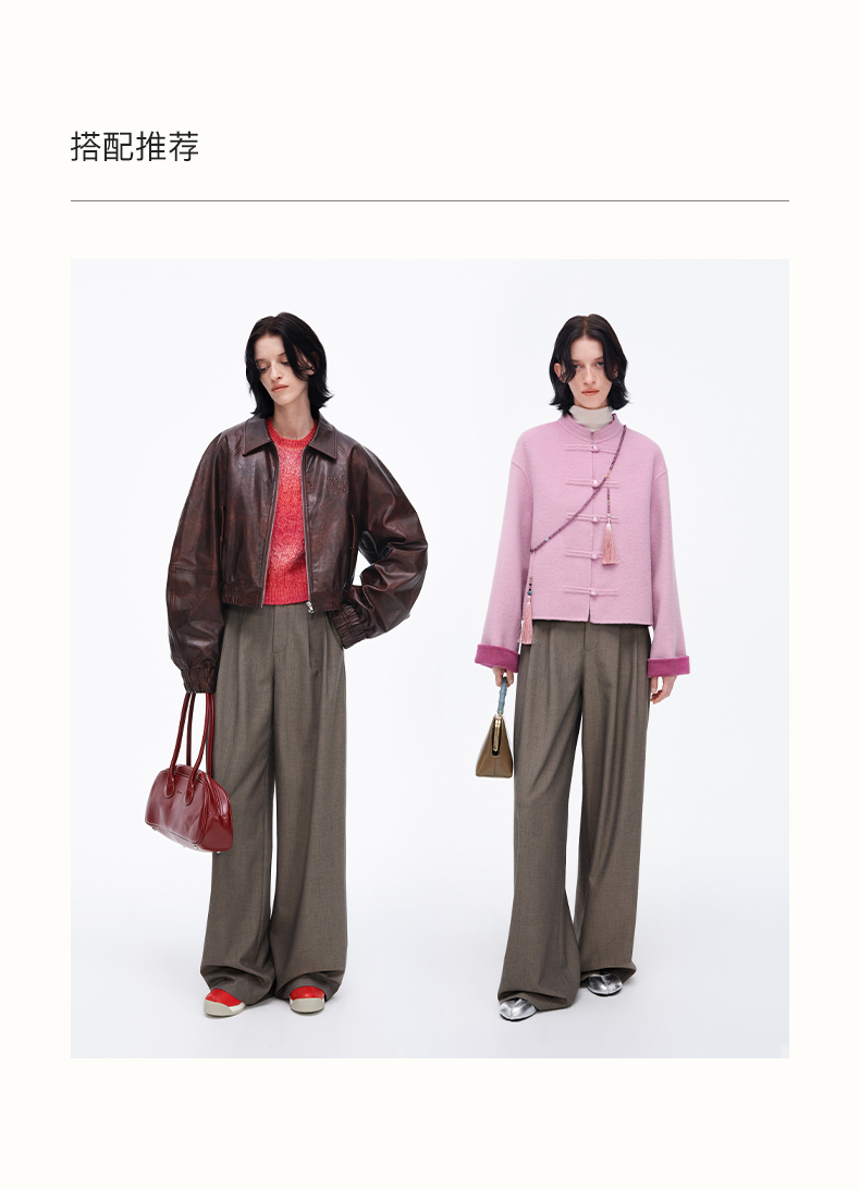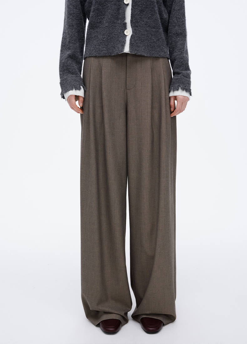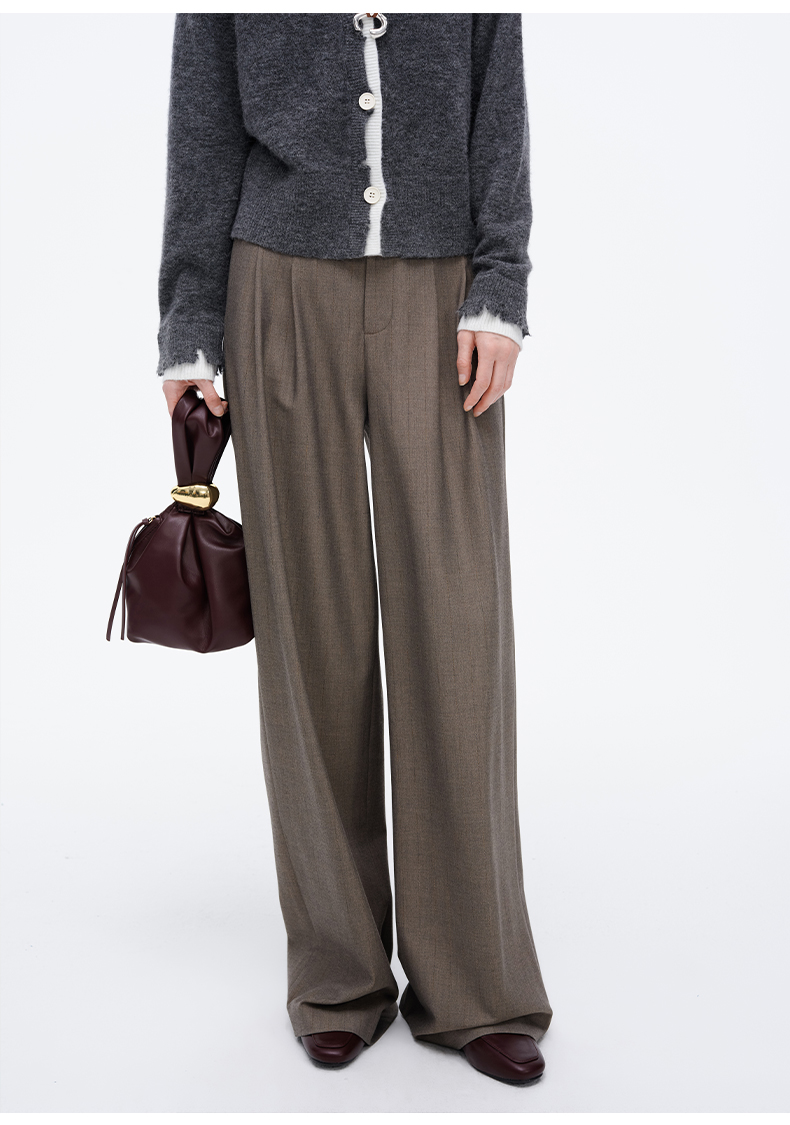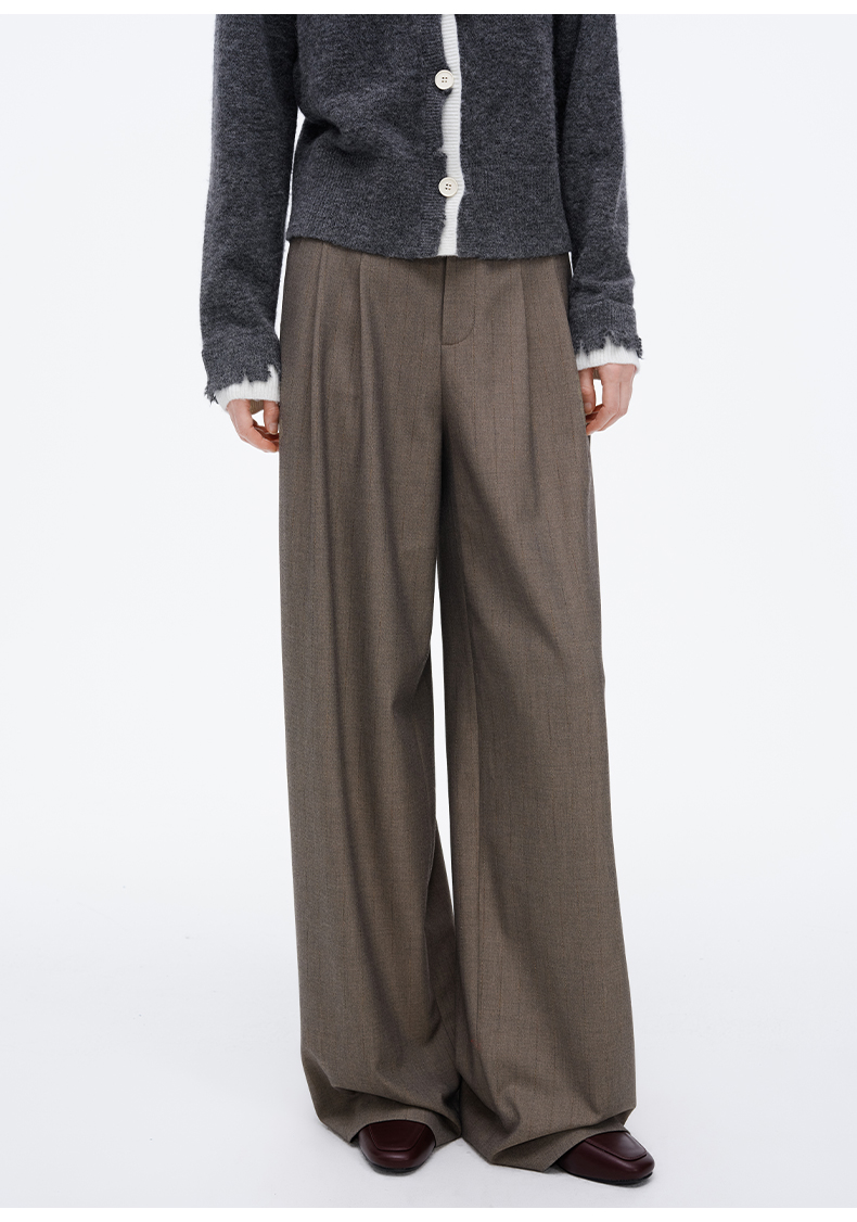 SELFWHO经典双褶阔腿西裤女2025春季新款宽松显瘦百搭通勤休闲裤