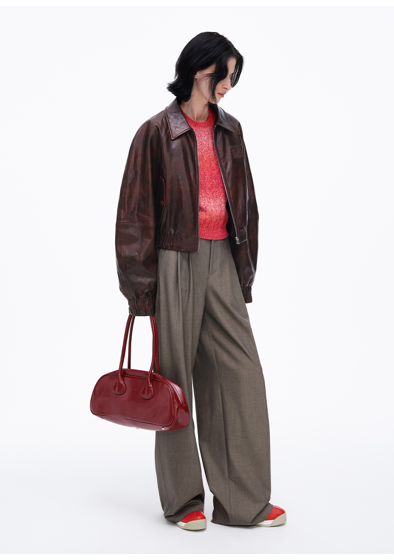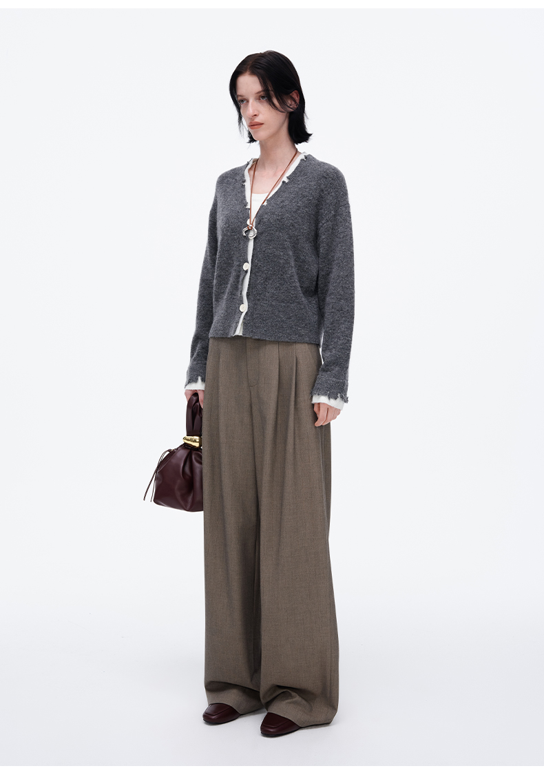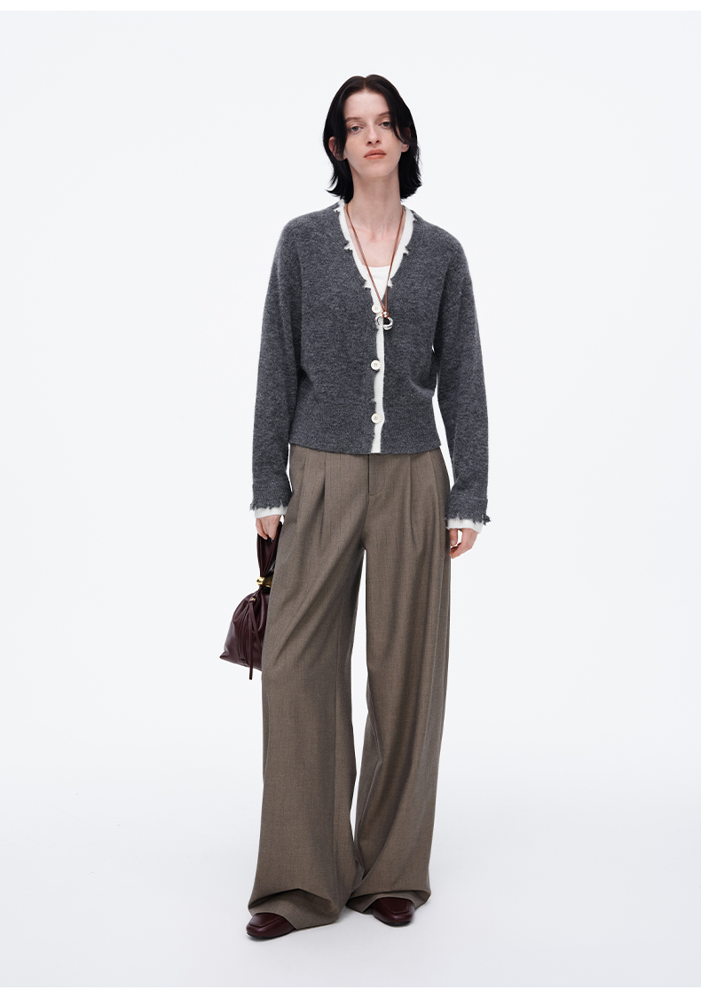 SELFWHO经典双褶阔腿西裤女2025春季新款宽松显瘦百搭通勤休闲裤