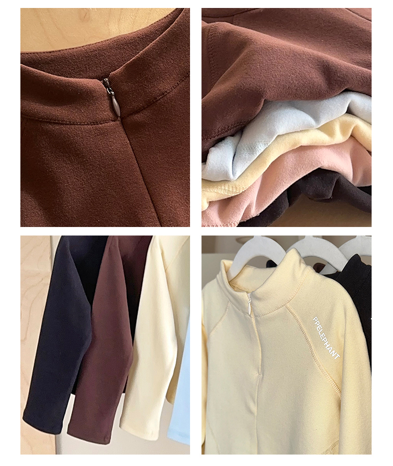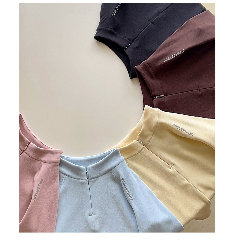 设计精致,坑条面料柔软亲肤,整体韩风小低领设计,还有肩口的小贴标,细节加分。