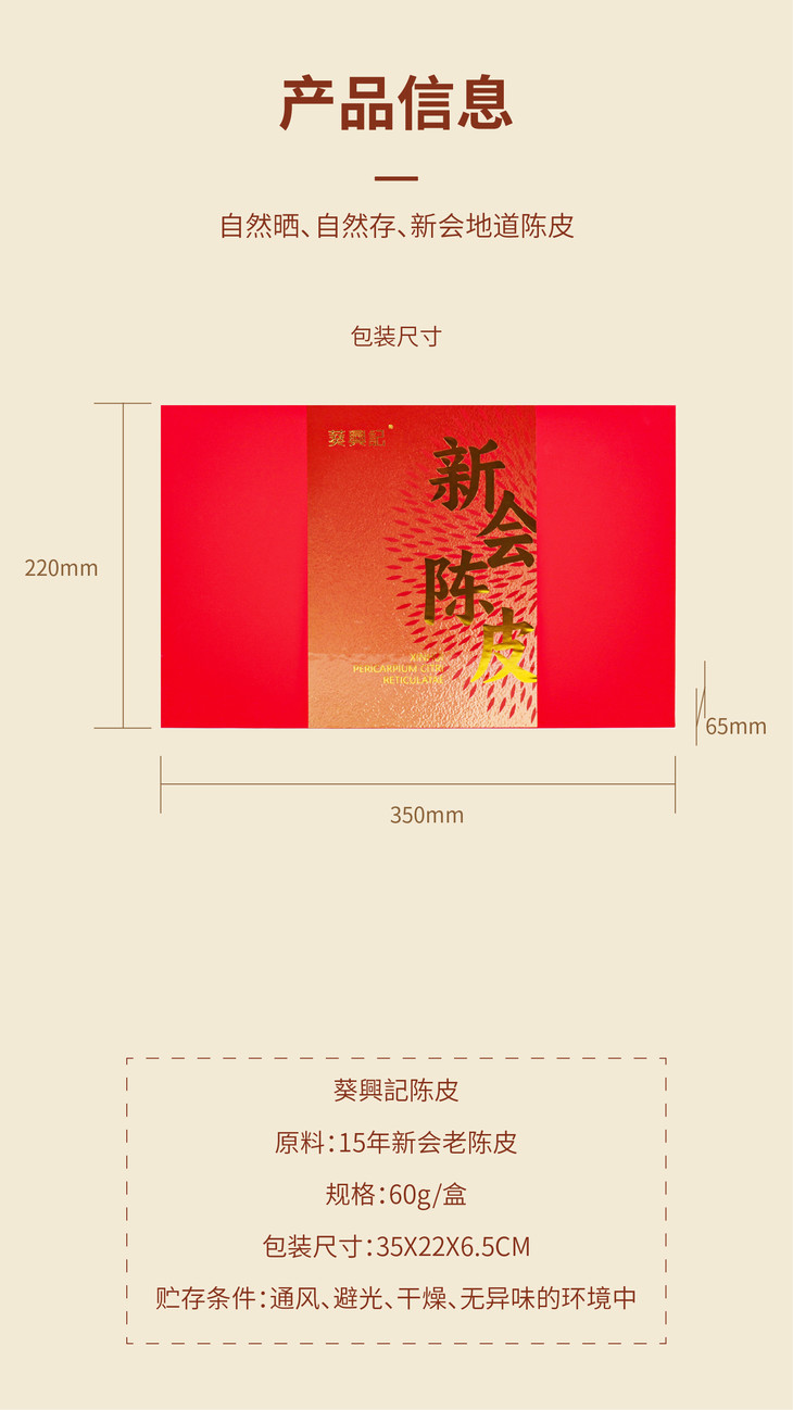 | 产品名称 | 葵興記15年新会陈皮60g |