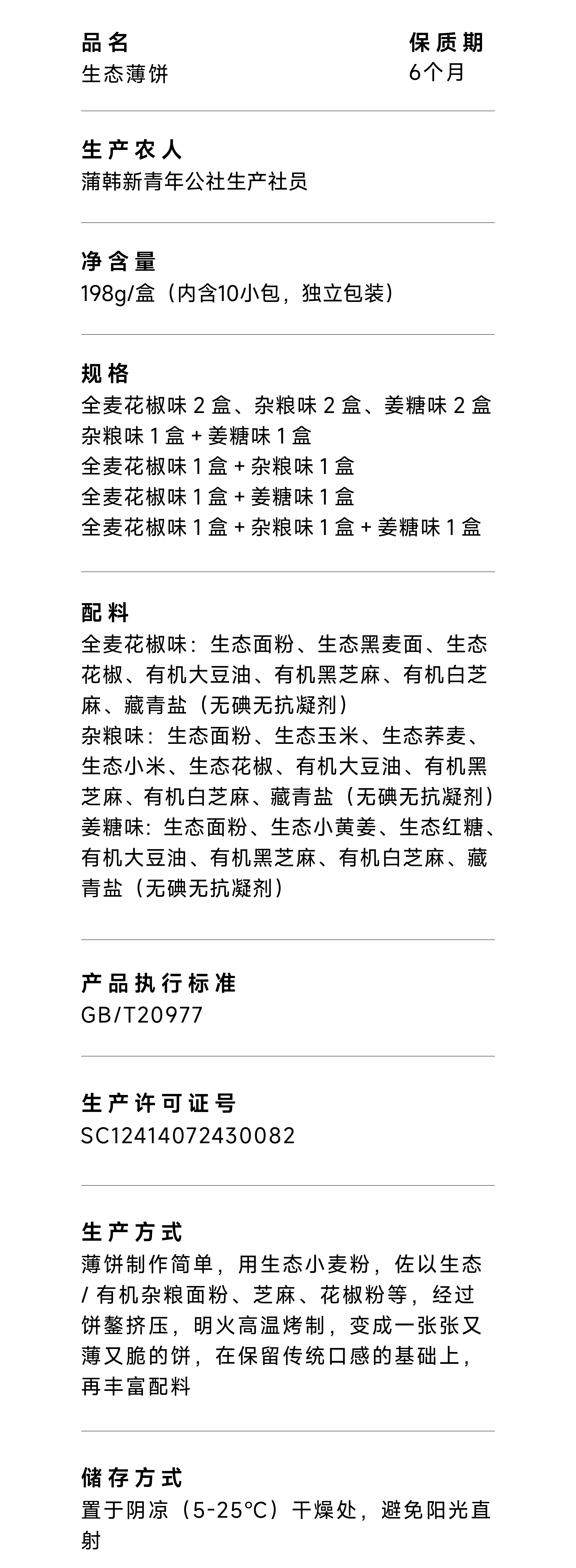 生态薄饼(薄脆) 198g*2盒 | 合作农友生产,来自山西永济,生产者:蒲韩公社成员 *【公平贸易农人定价】