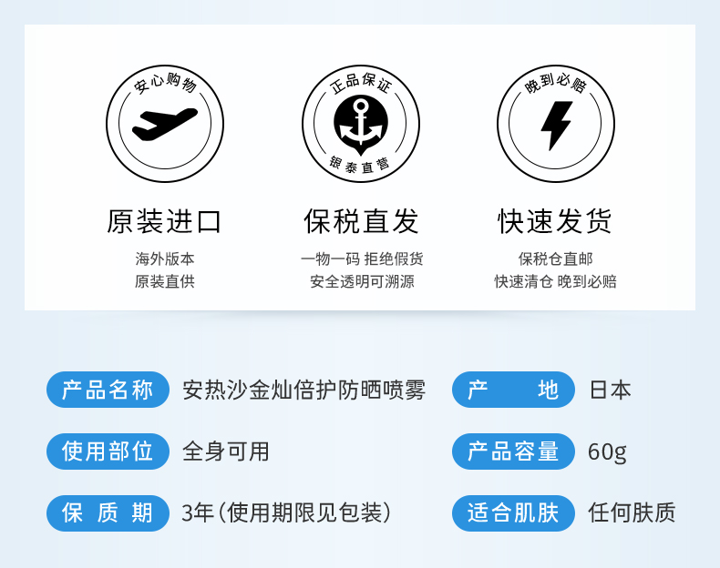 【保税仓】资生堂安耐晒防晒喷雾60g