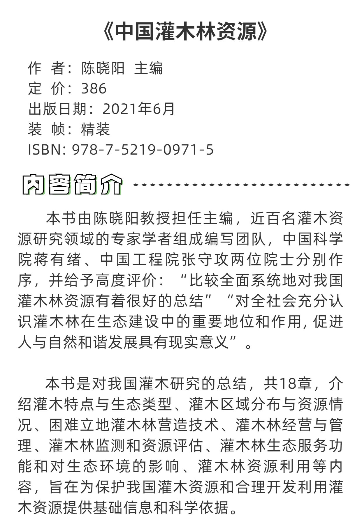 中国灌木林资源国家出版基金 陈晓阳主编 十三五重点图书