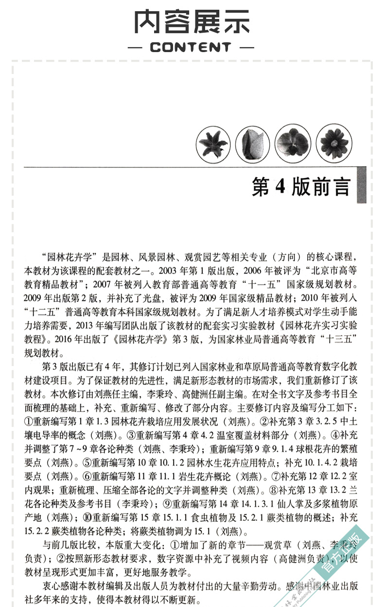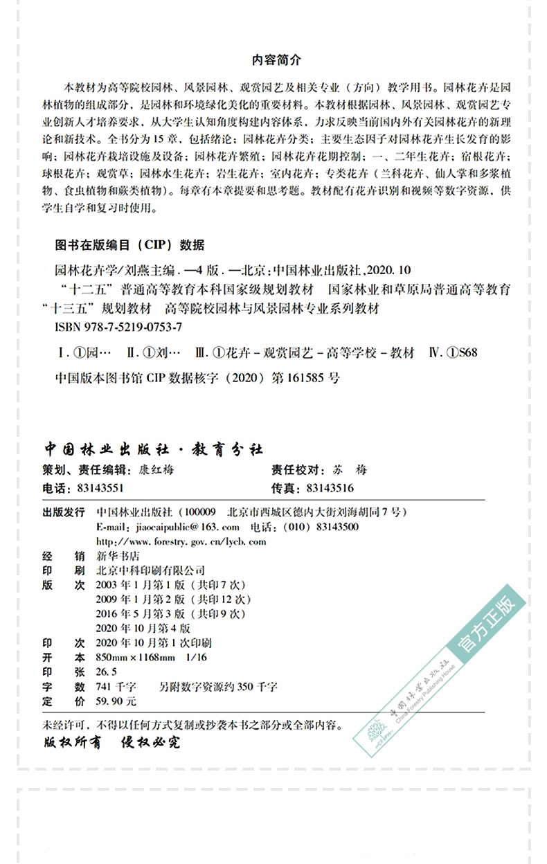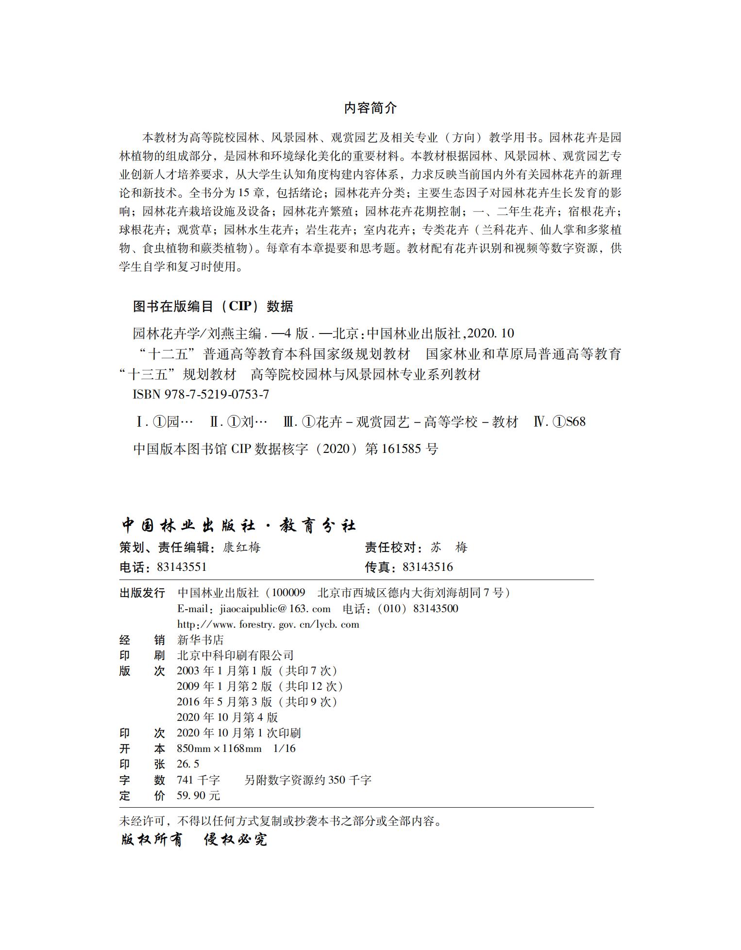 园林花卉学 第4版 (附数字资源)刘燕 0753林业和草原局高等教育规划教材 园林与风景园林专业规划教材 中国林业出版社