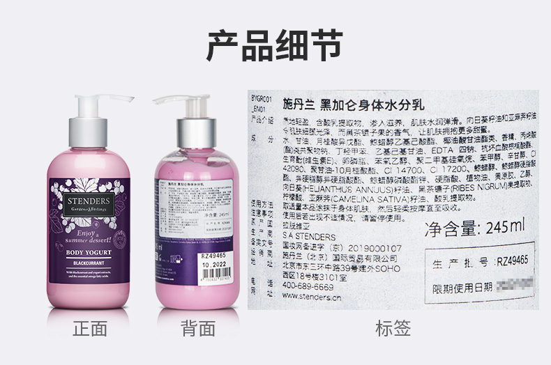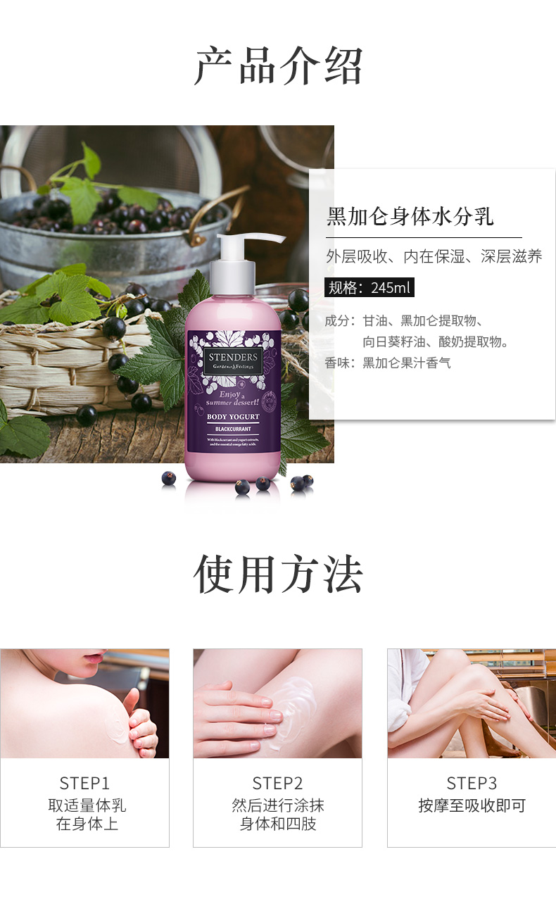 施丹兰(STENDERS)黑加仑水分身体乳245ml润肤乳全身滋润补水留香 心选到家