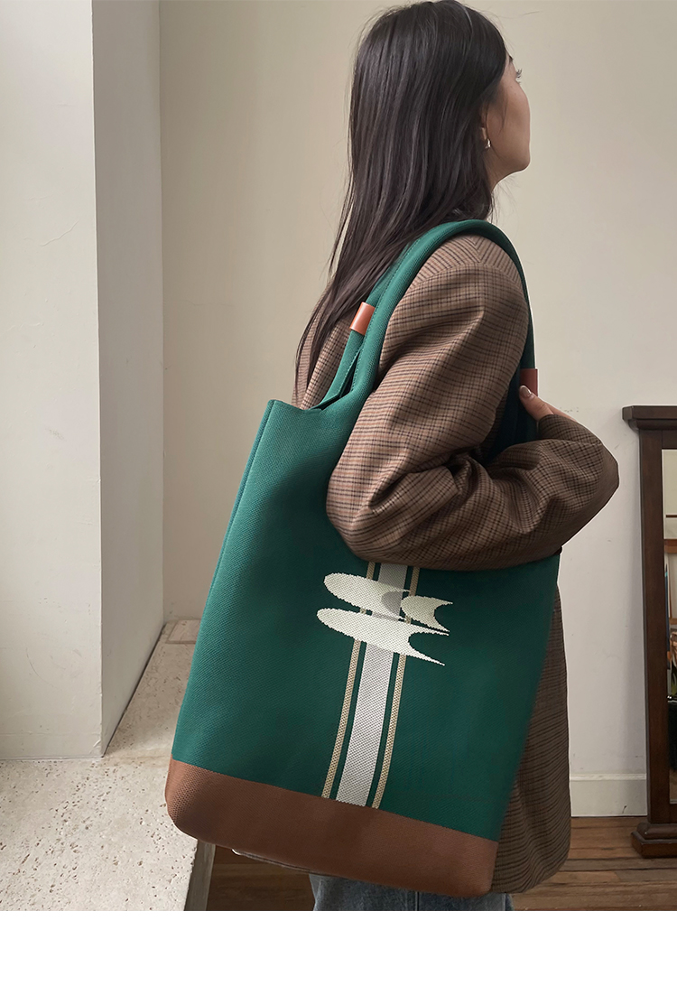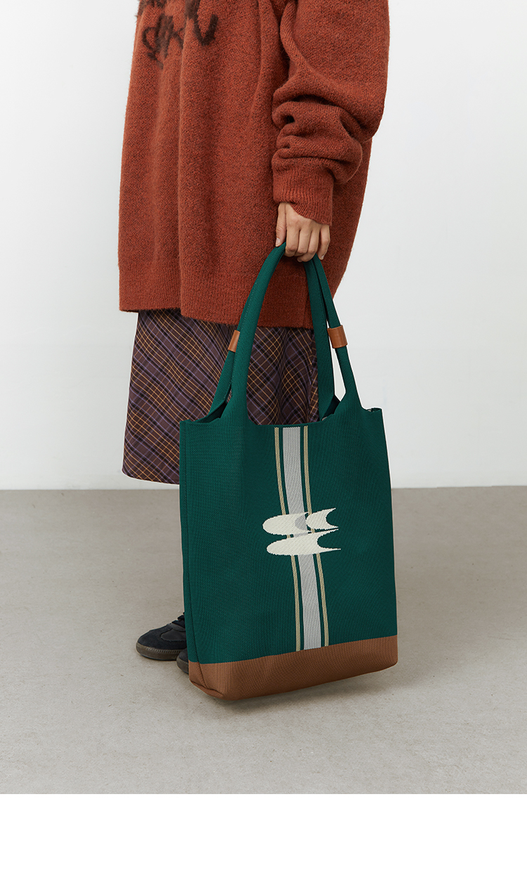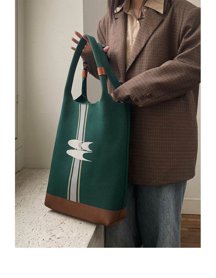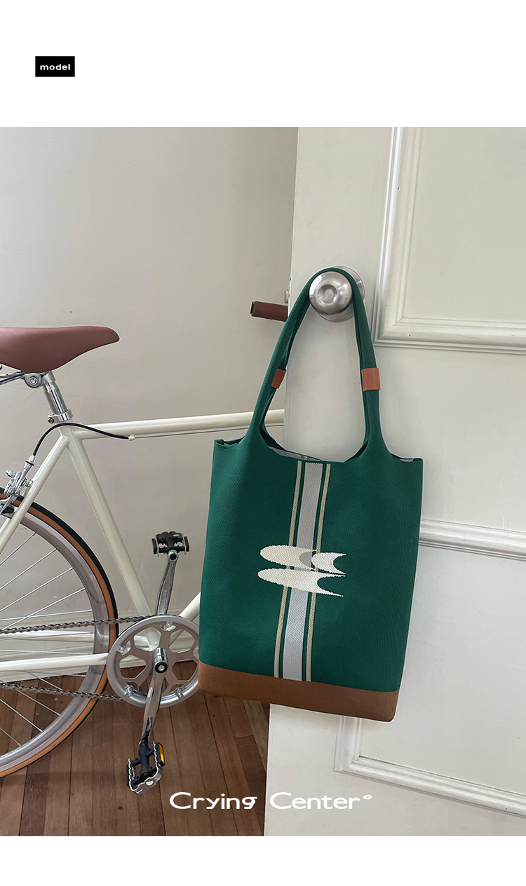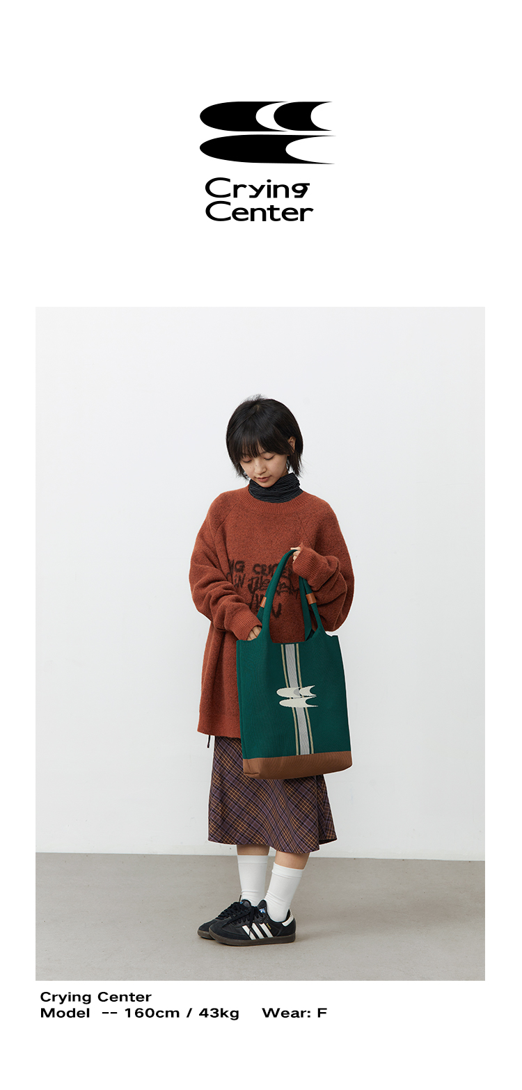 CryingCenter 复古绿针织手提包大容量单肩托特包 哭喊中心