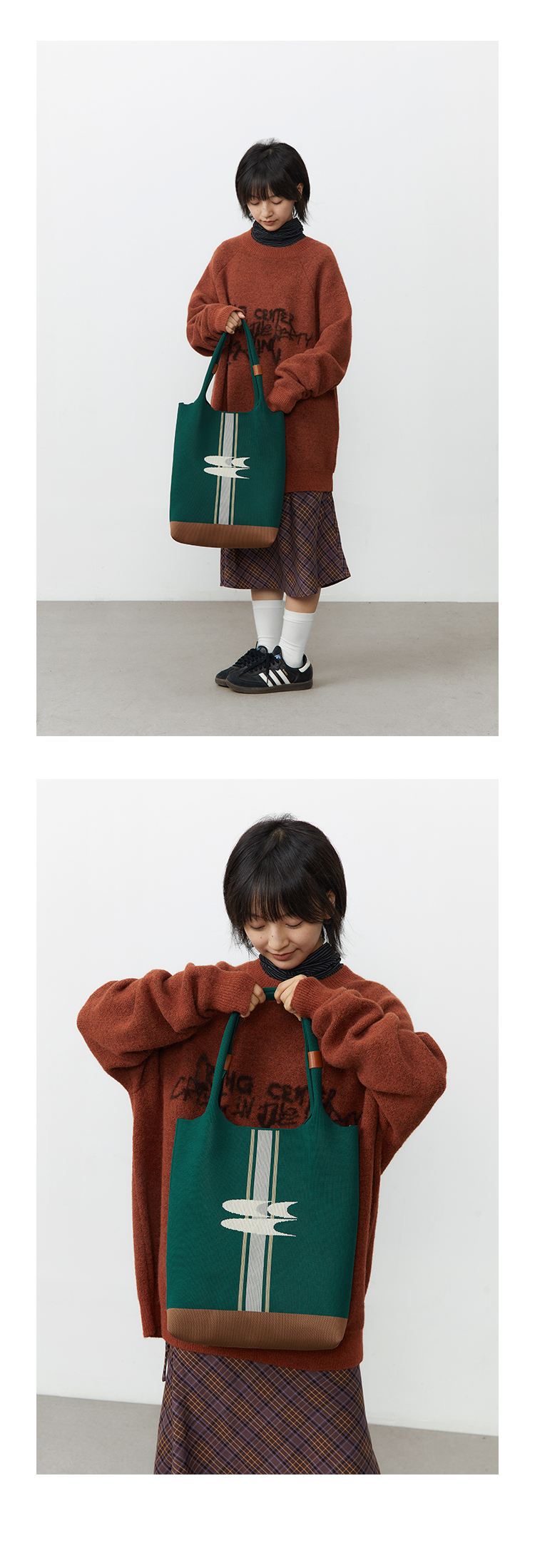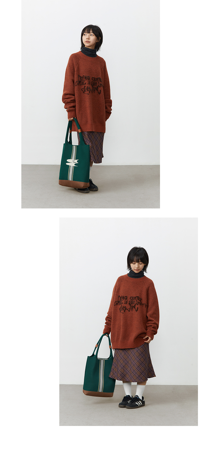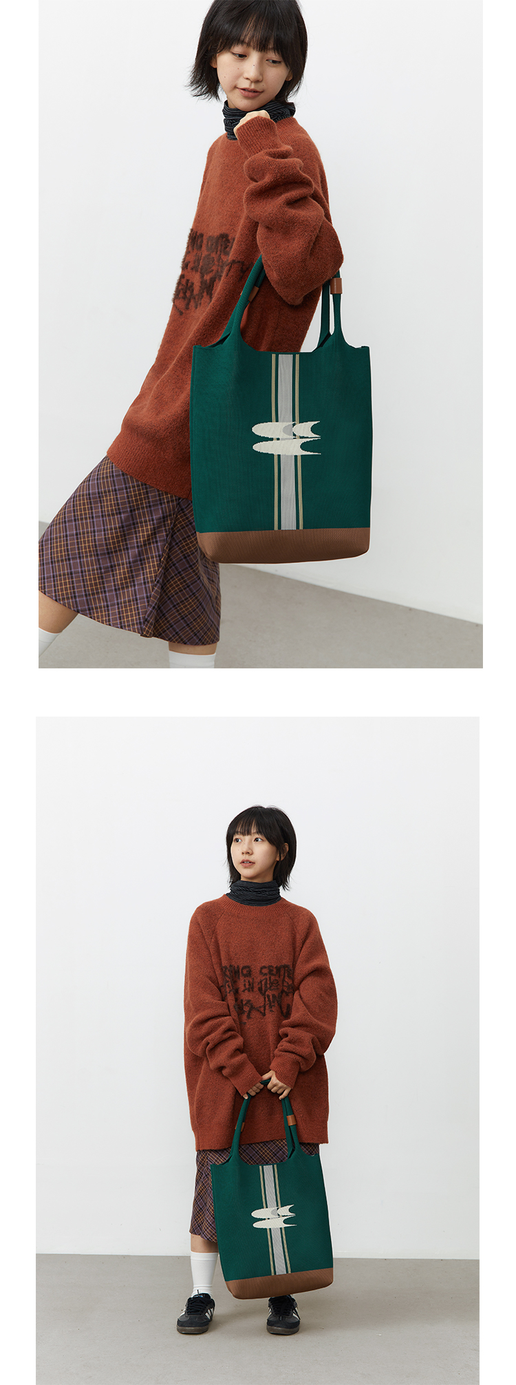 CryingCenter 复古绿针织手提包大容量单肩托特包 哭喊中心