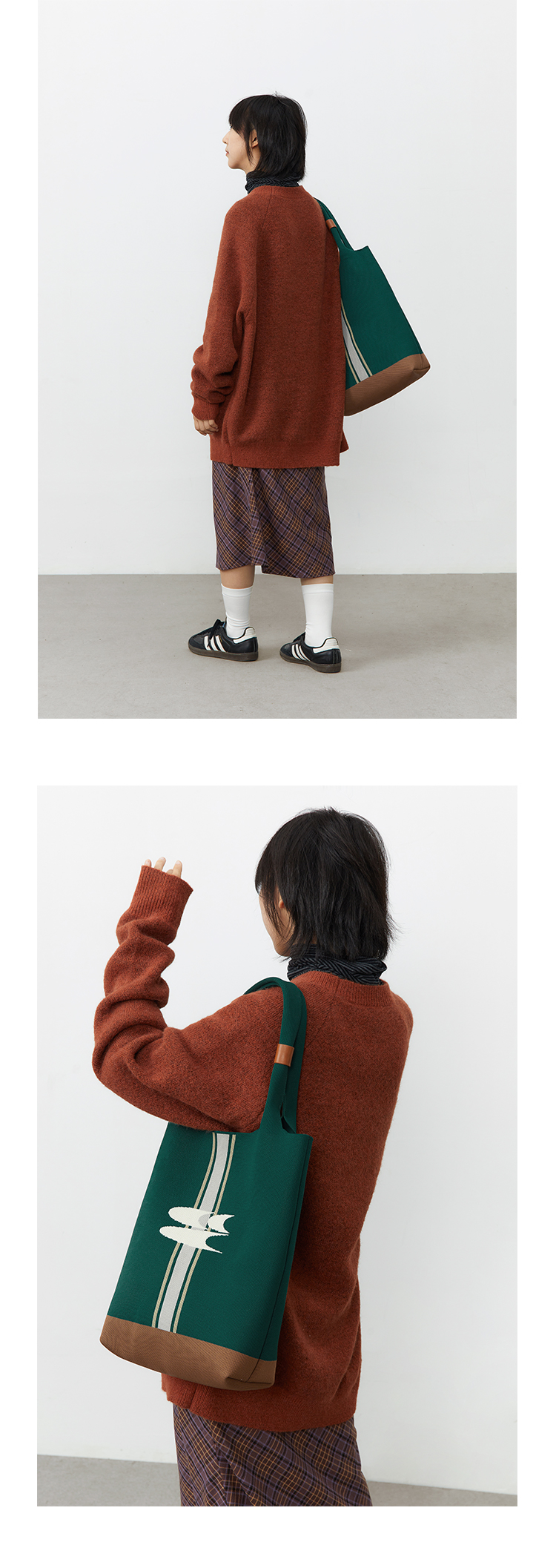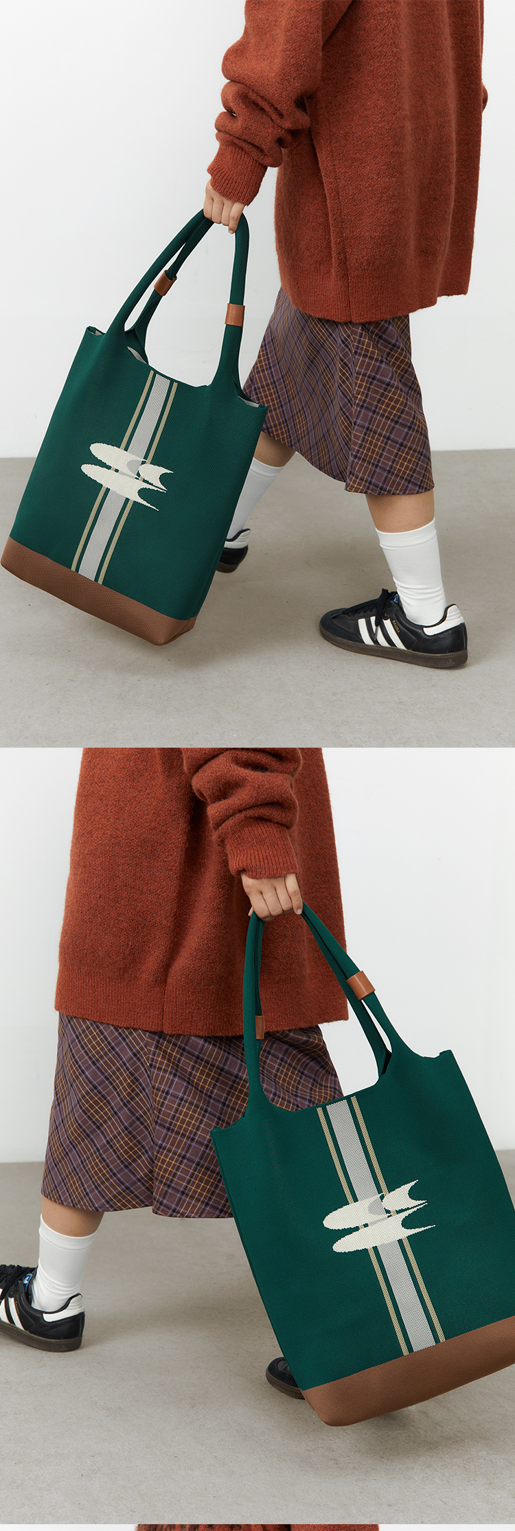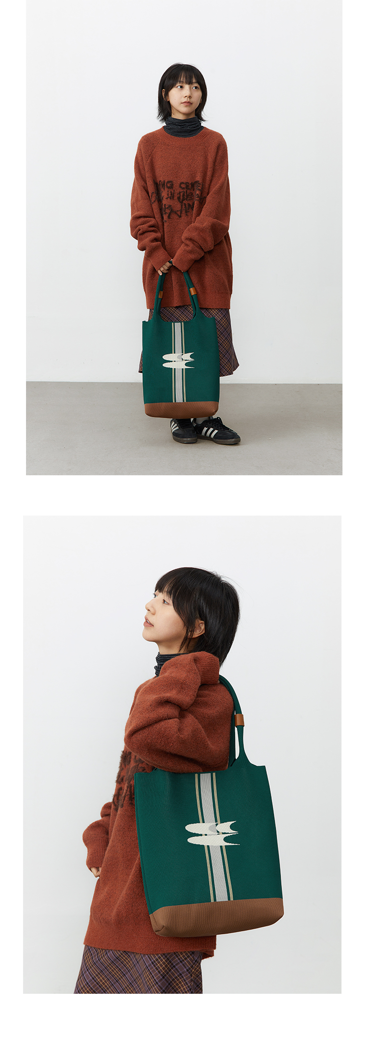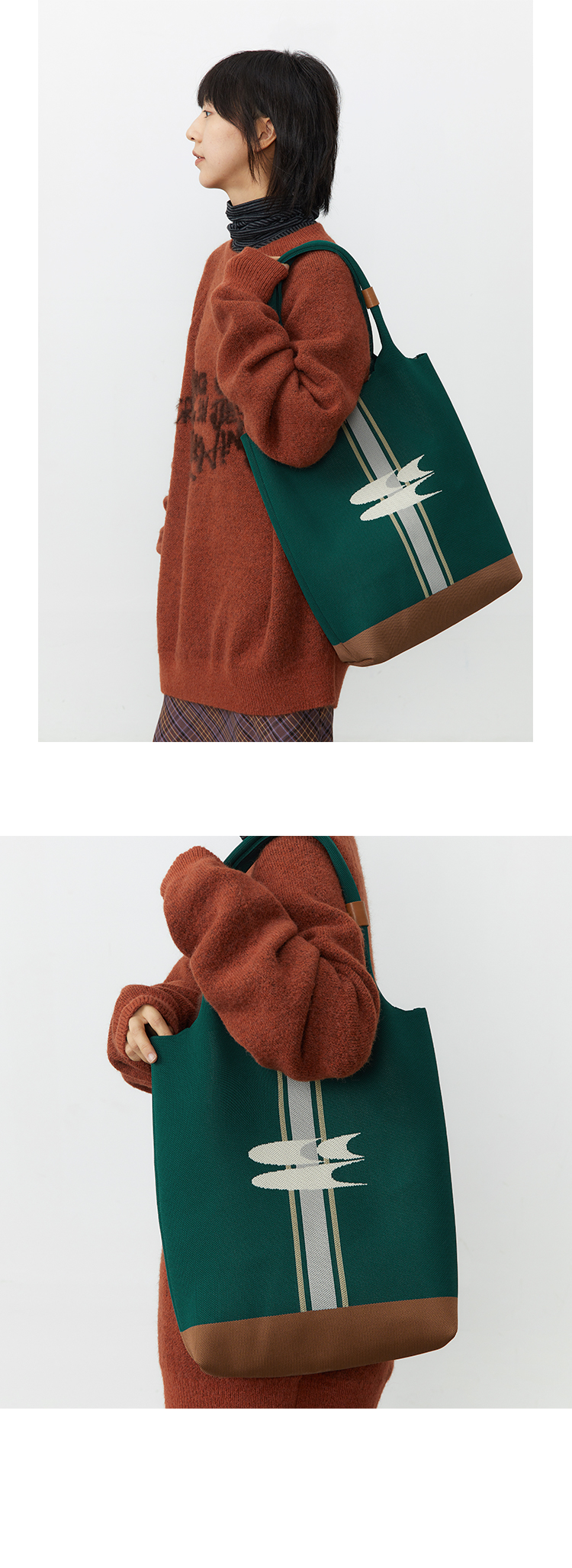 CryingCenter 复古绿针织手提包大容量单肩托特包 哭喊中心