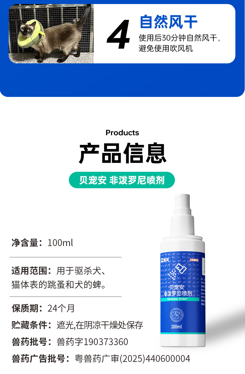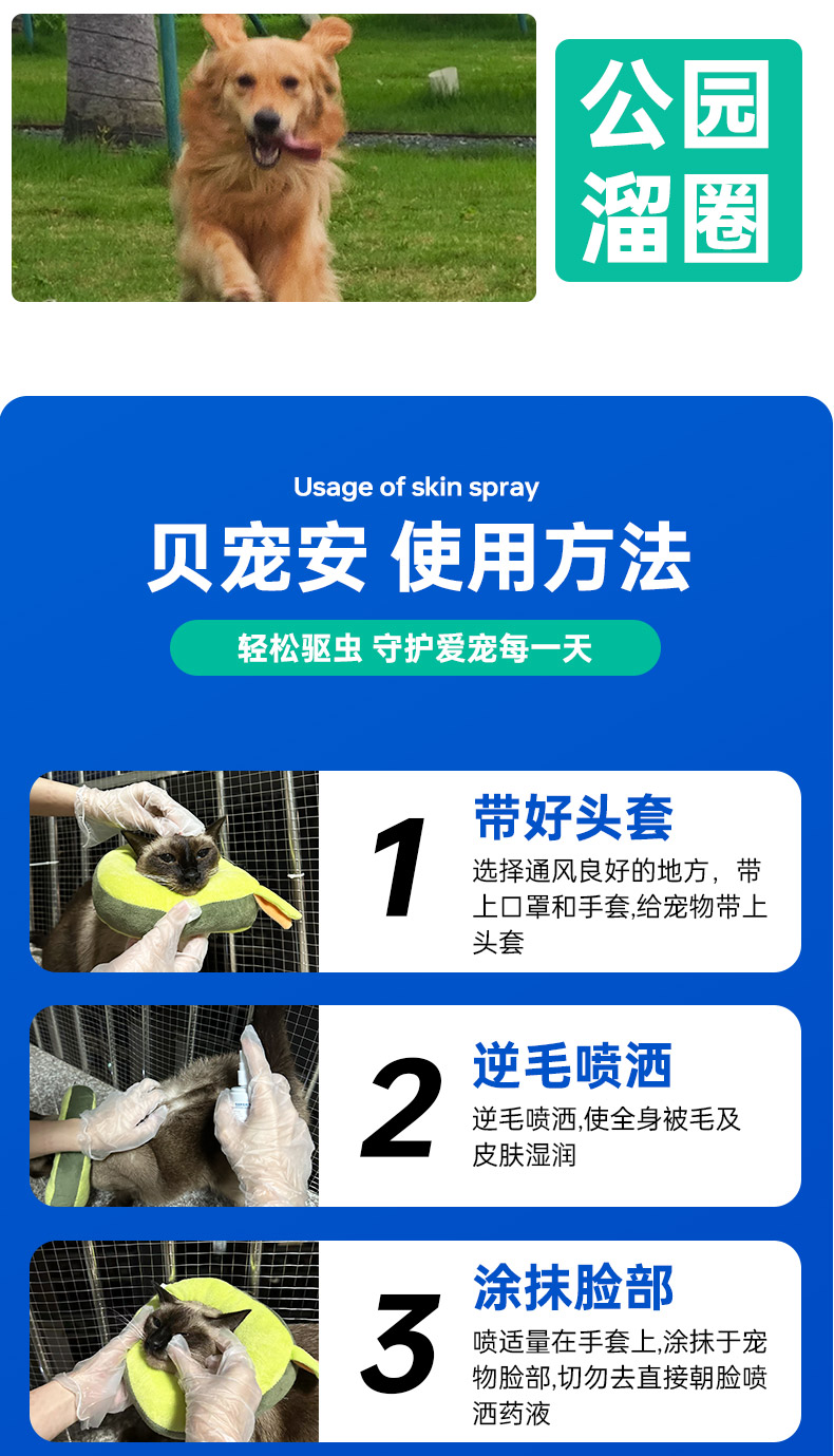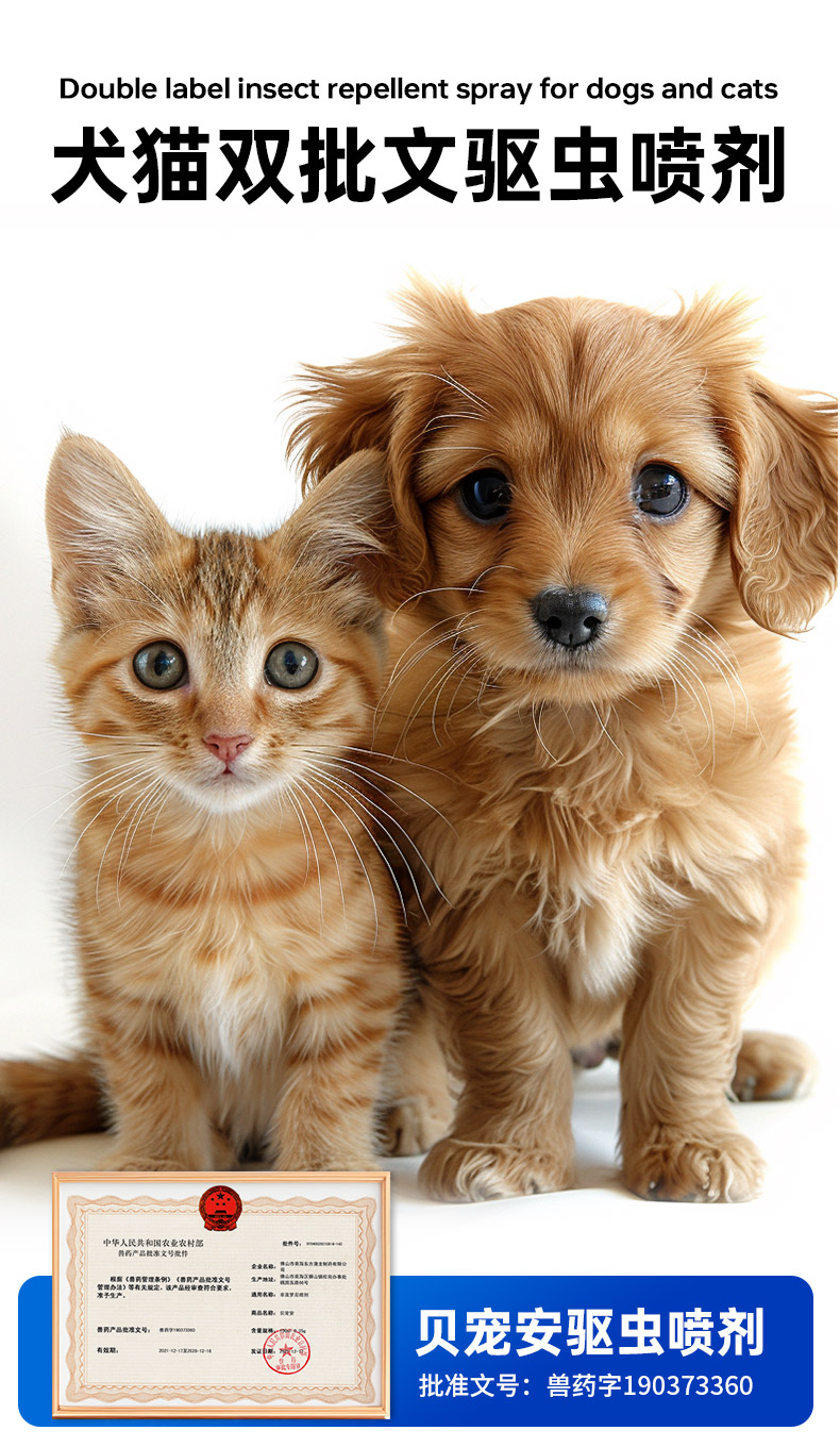 【澳龙】驱虫喷雾贝宠安喷剂体外药狗狗猫咪宠物猫犬除虱子跳蚤去蜱虫