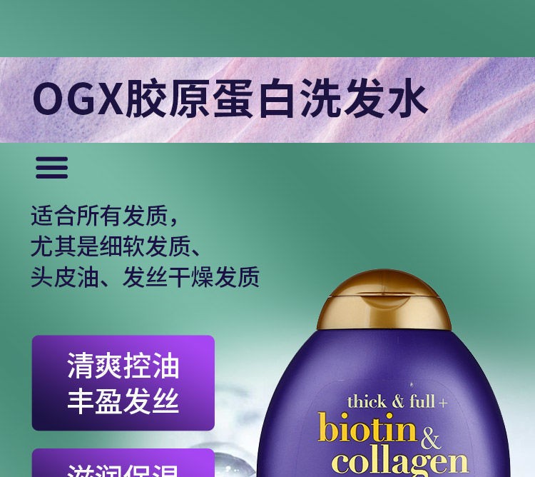 【保税仓】OGX蔻姬丝胶原蛋白强韧浓密洗发水385ml