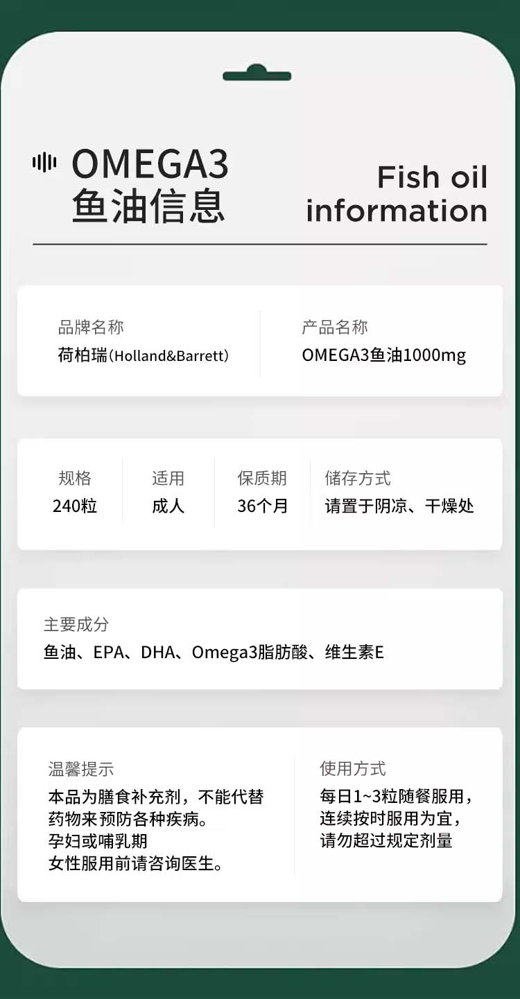 【保税仓】荷柏瑞Omega3深海鱼油胶囊 1000mg 240粒