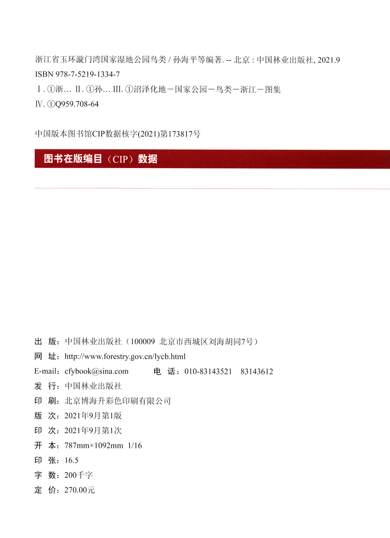浙江省玉环漩门湾国家湿地公园鸟类(精) 1334 孙海平//赵洪//陈严雪//吴丞昊中国林业出版社