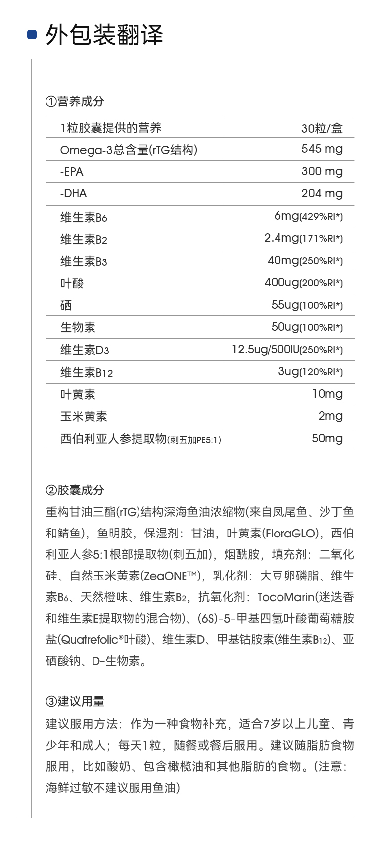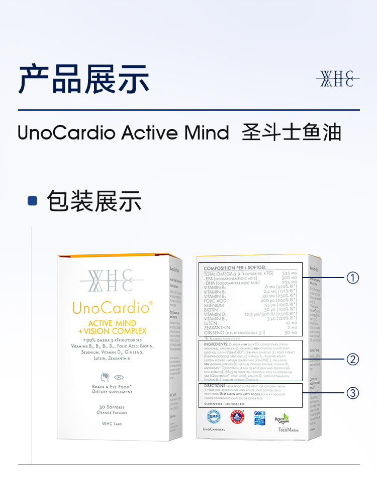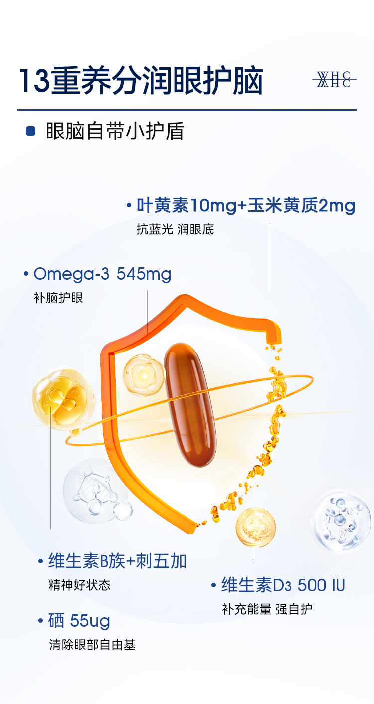 WHC圣斗士鱼油专利叶黄素玉米黄素Omega3护眼脑儿童学生成人30粒