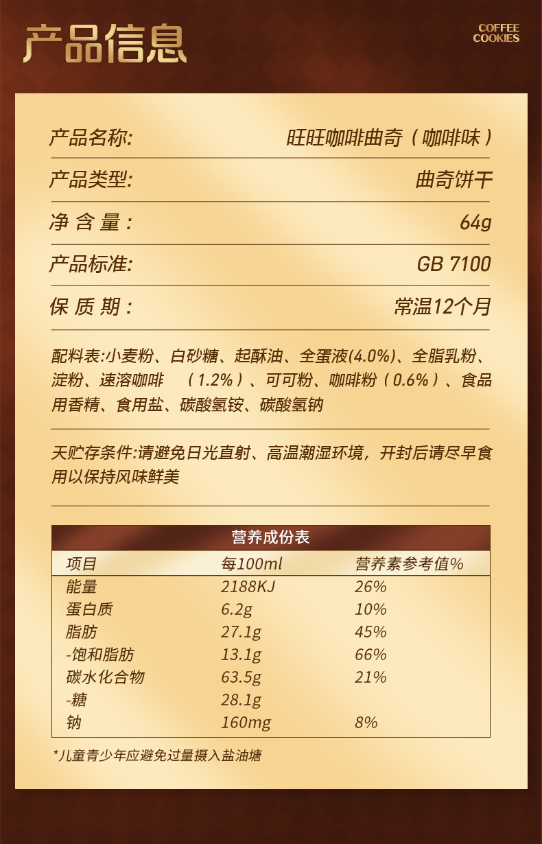 旺旺 便携小包装 旺旺咖啡曲奇 咖啡味64g
