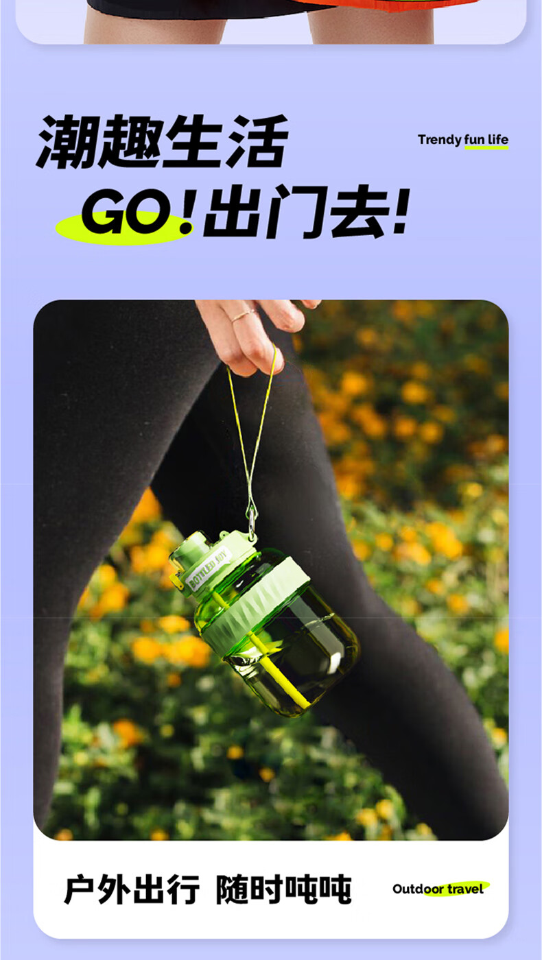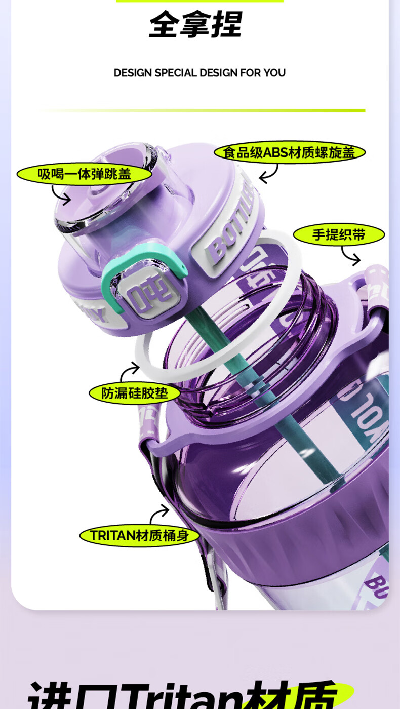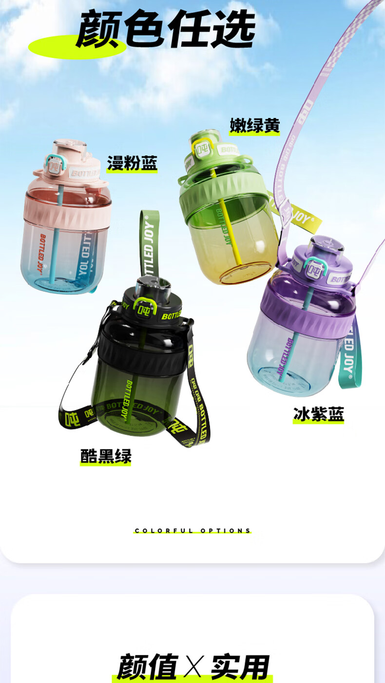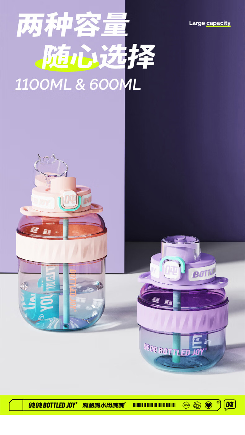 吨吨 钢环款吸喝弹跳盖渐变水杯D9 11000ml