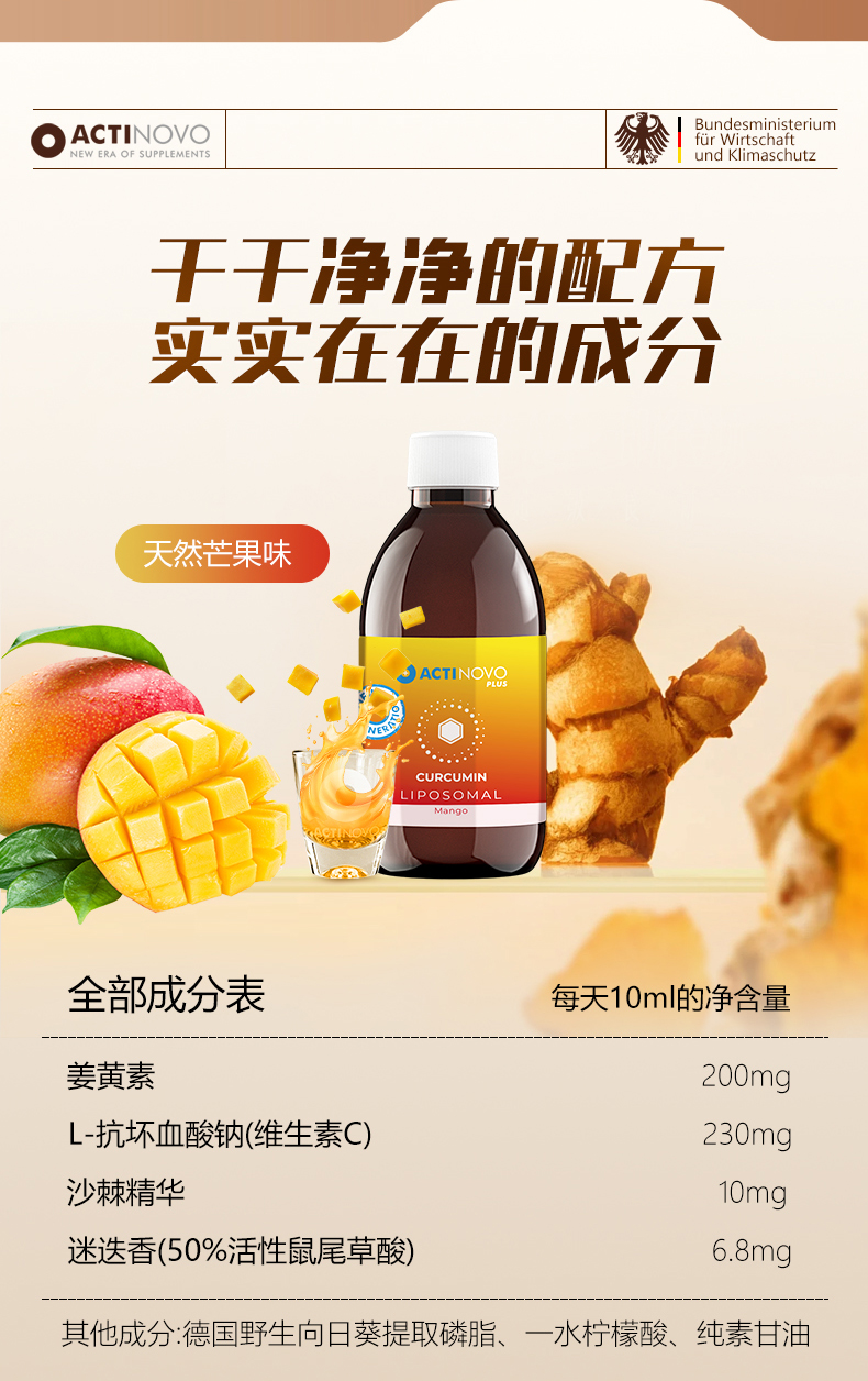 【V健康专属】德国液体脂质体actinovo姜黄素口服液熬夜护月干断燚瓶
