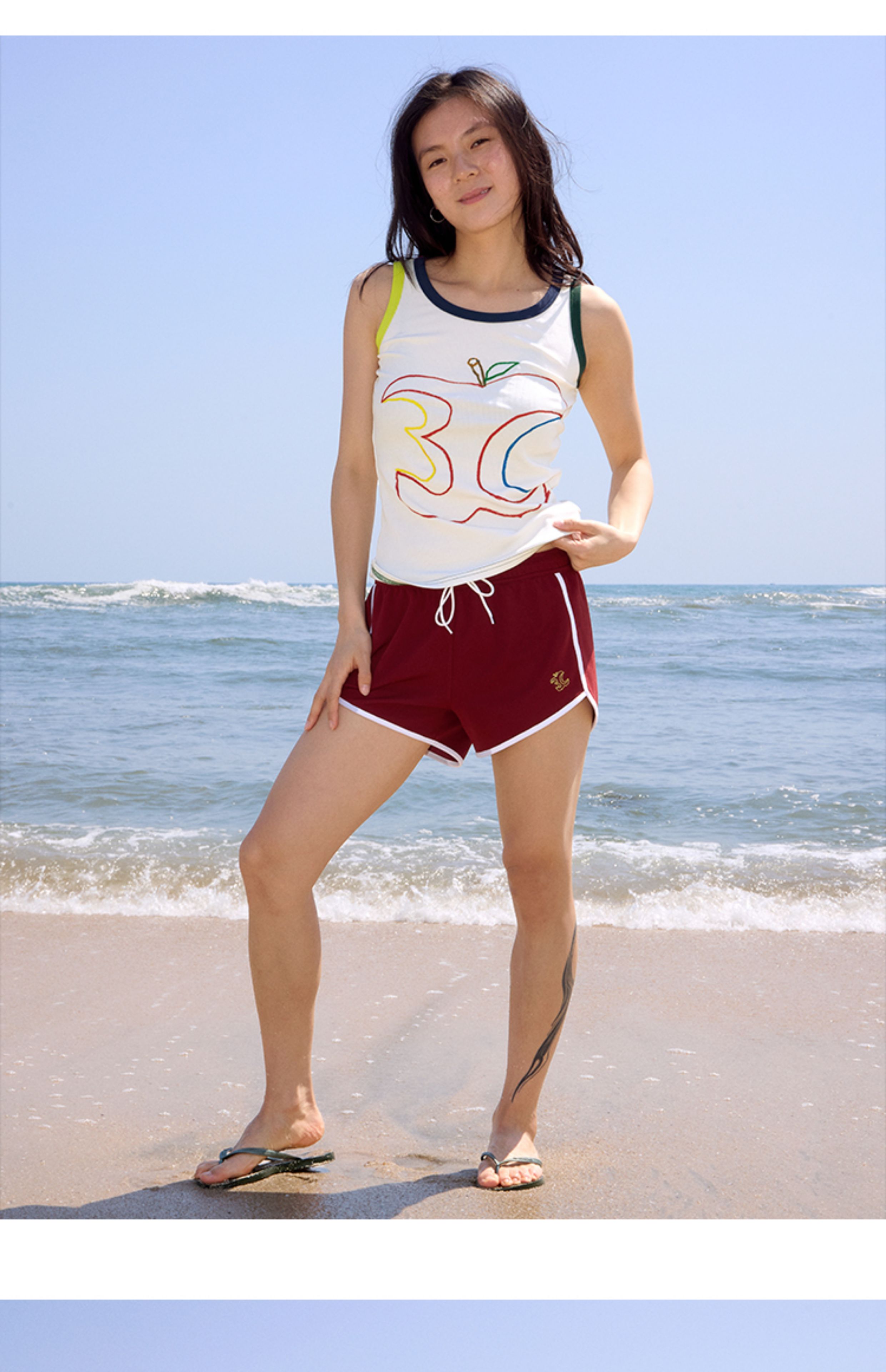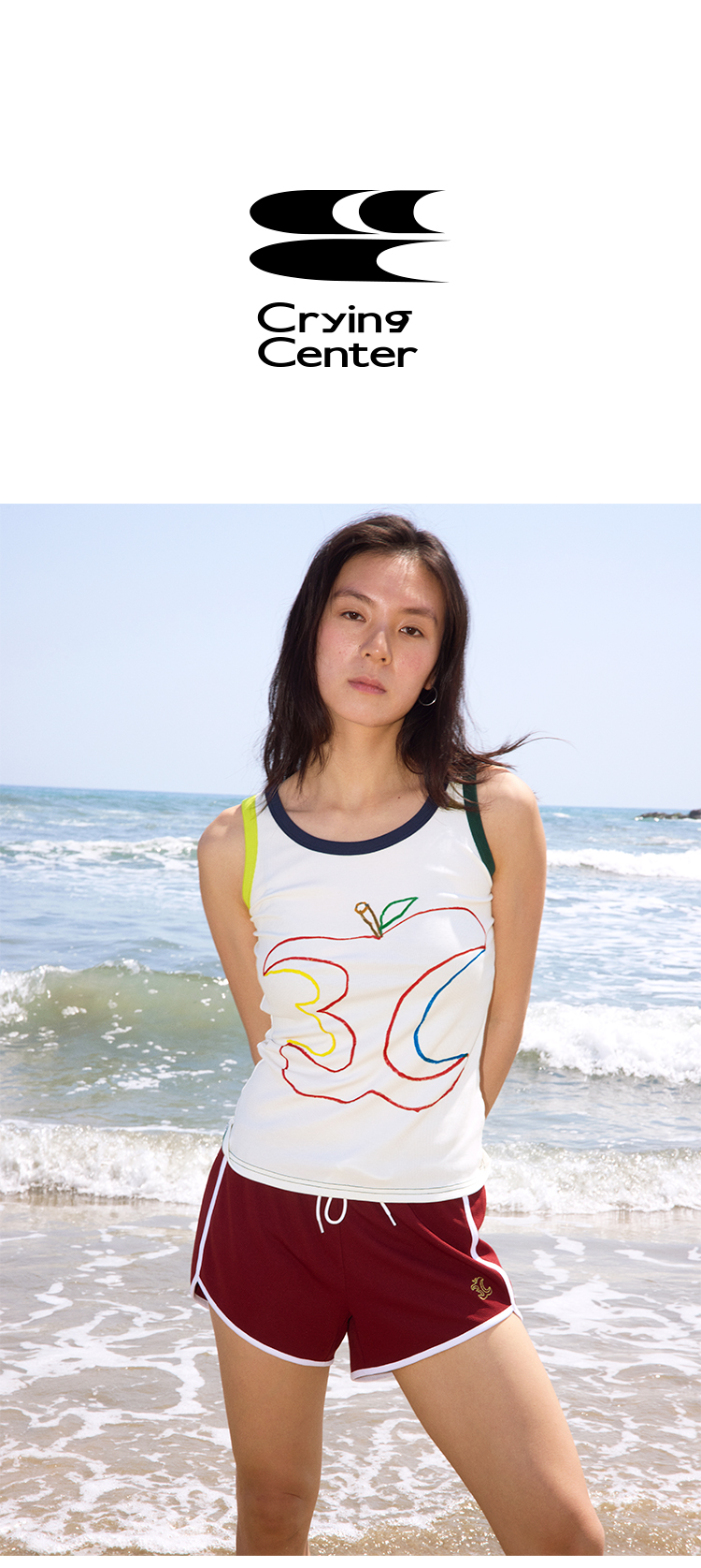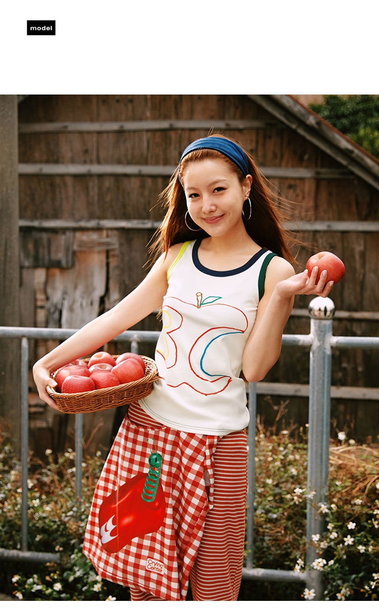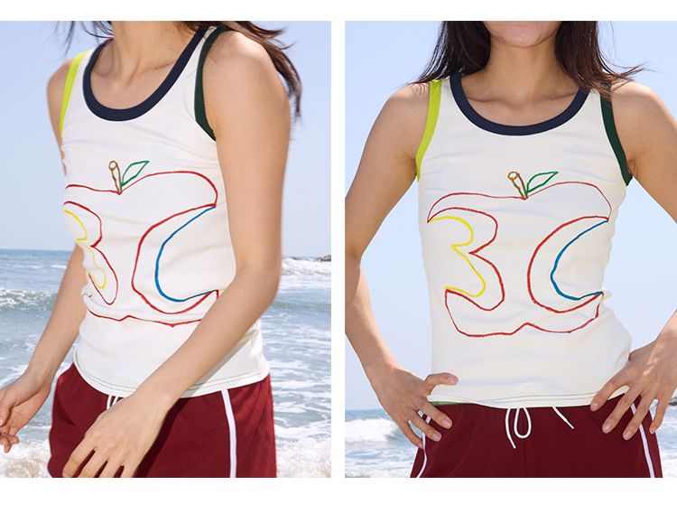 CryingCenter 手绘线条3C苹果撞色复古弹力遮副乳修身亲肤背心