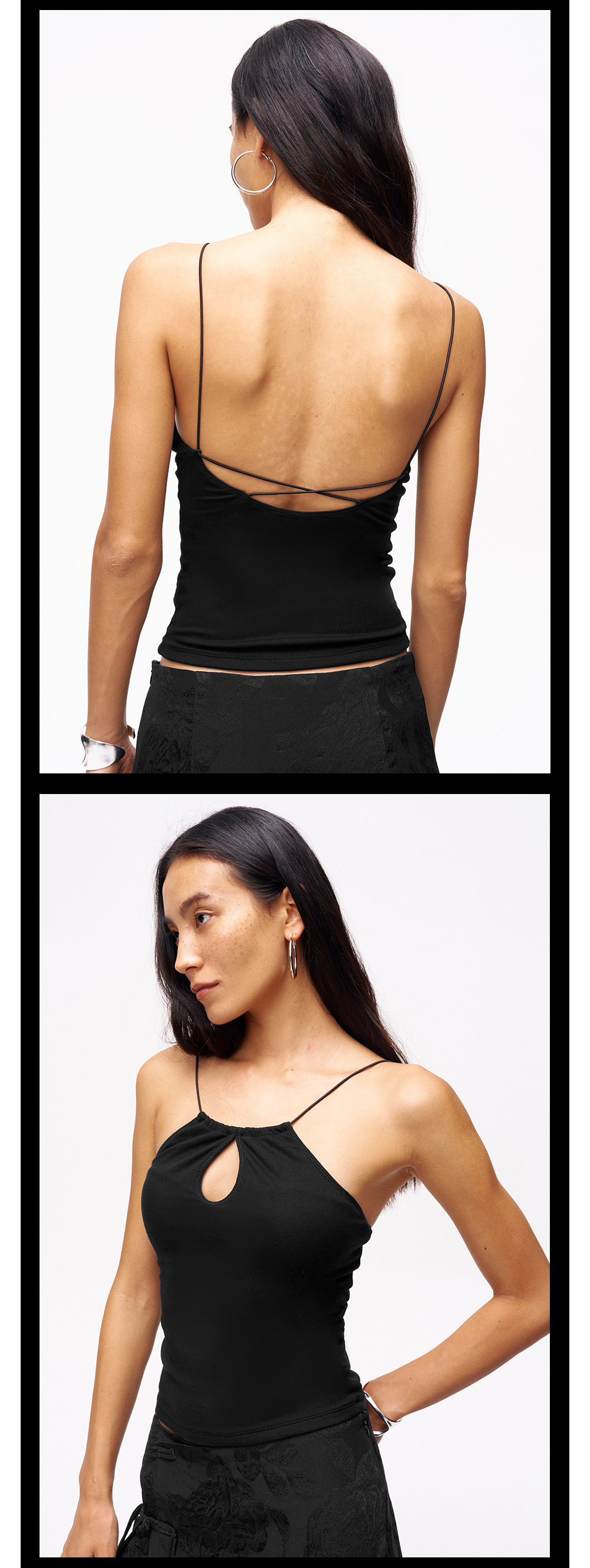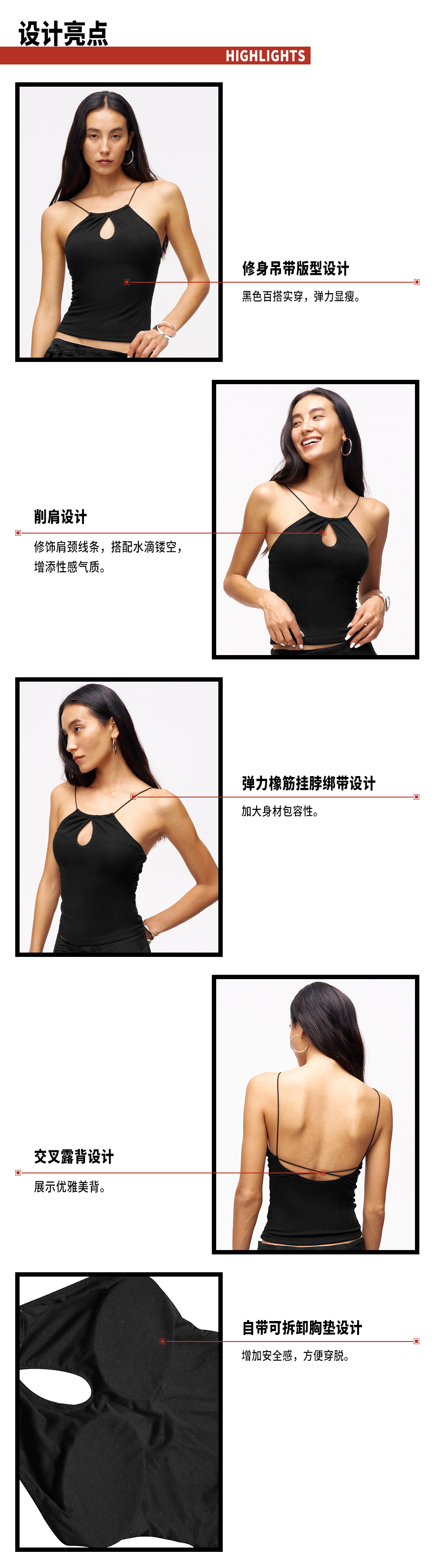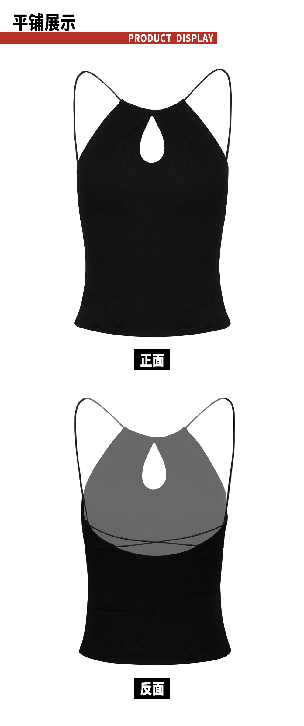 TR她热 黑桃A BraFree 黑色弹力修身带胸垫显瘦镂空露背挂脖吊带背心