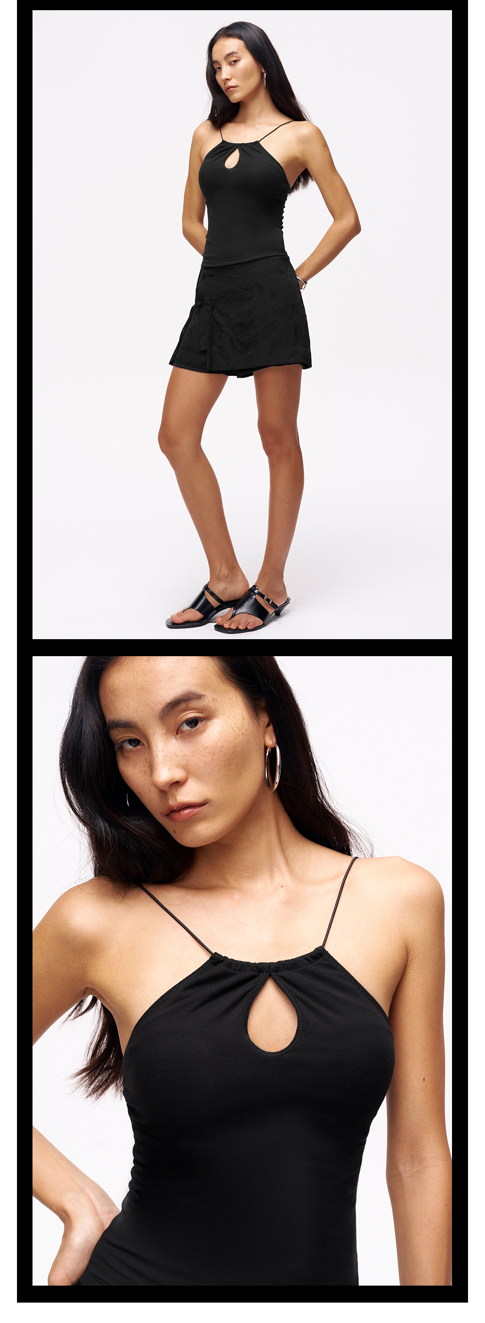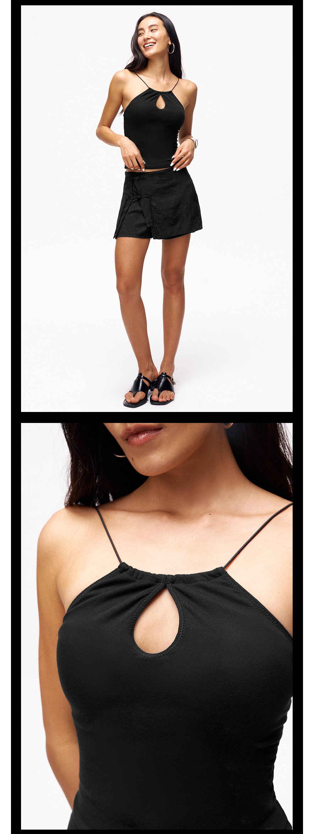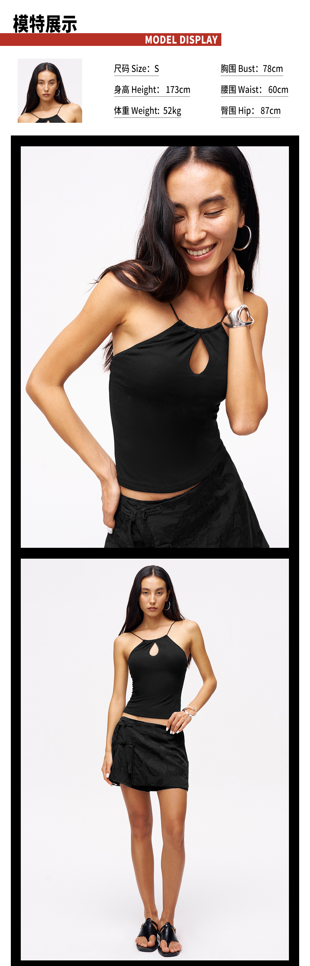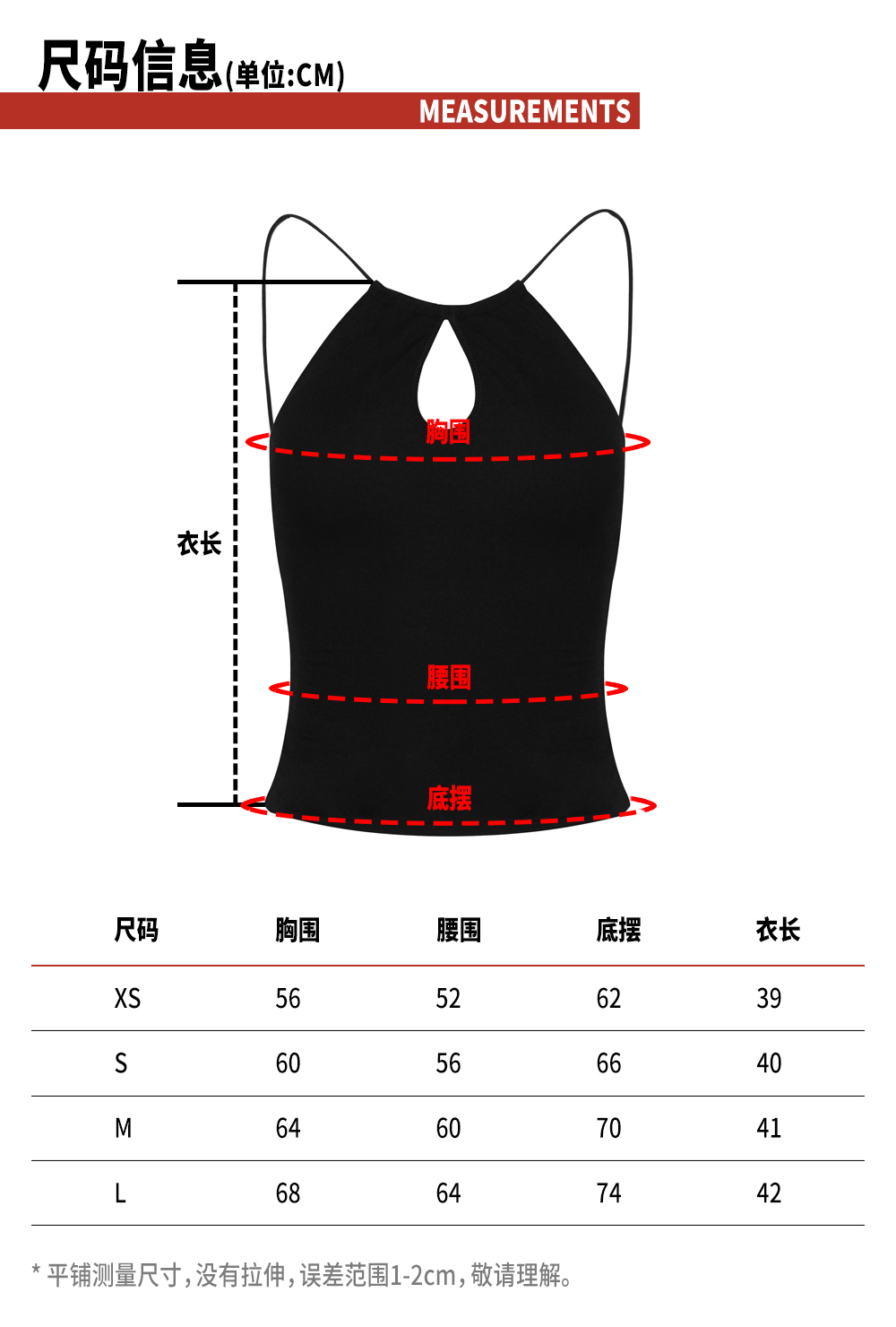 TR她热 黑桃A BraFree 黑色弹力修身带胸垫显瘦镂空露背挂脖吊带背心