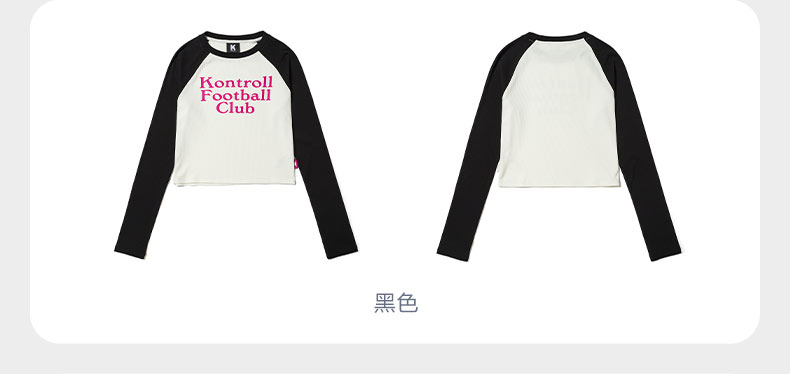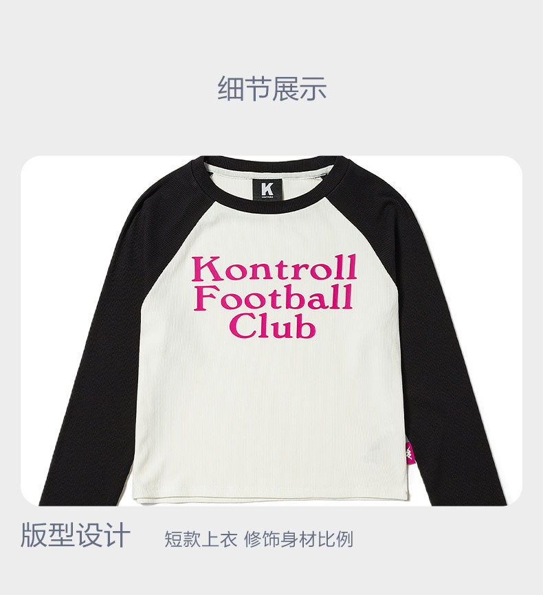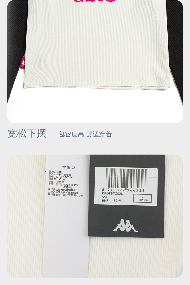Kappa卡帕长袖2023新款女复古撞色长T美式街头圆领辣妹短款上衣KPDFBTC02K