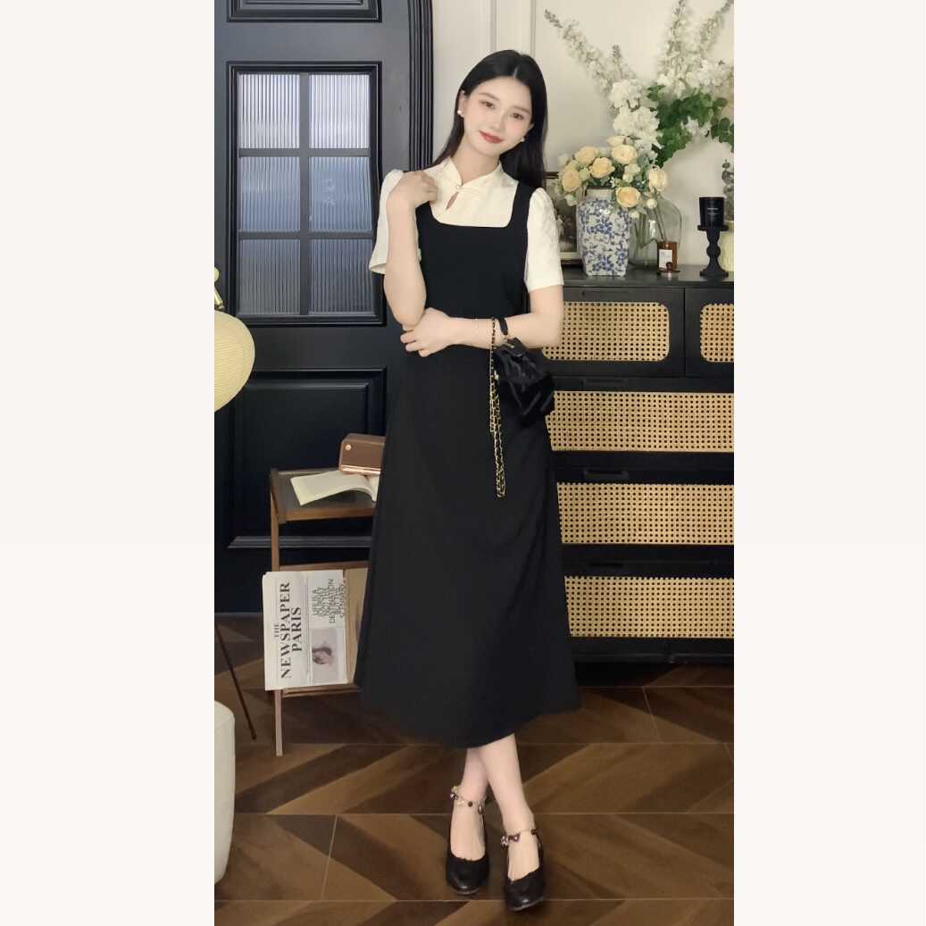 鹿向南「悬月明」新中式连衣裙2024新款女夏季法式气质假两件裙子