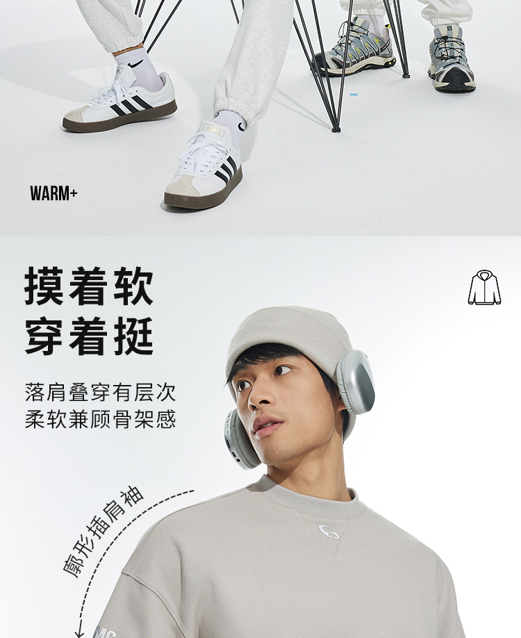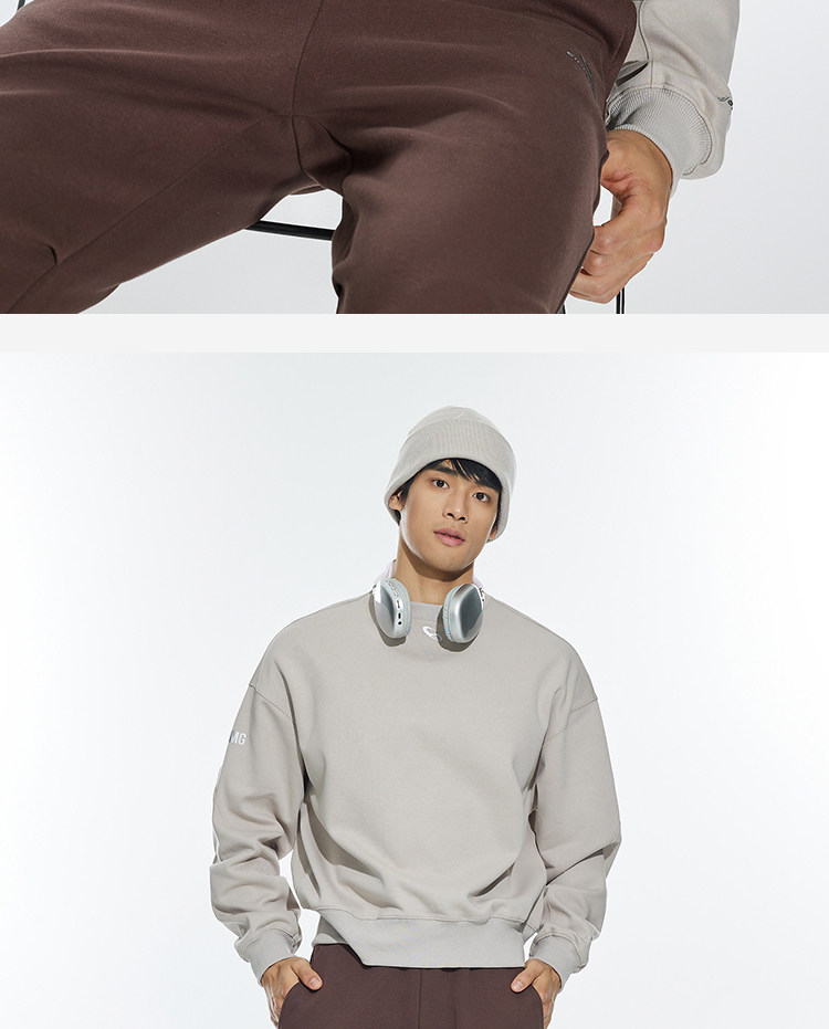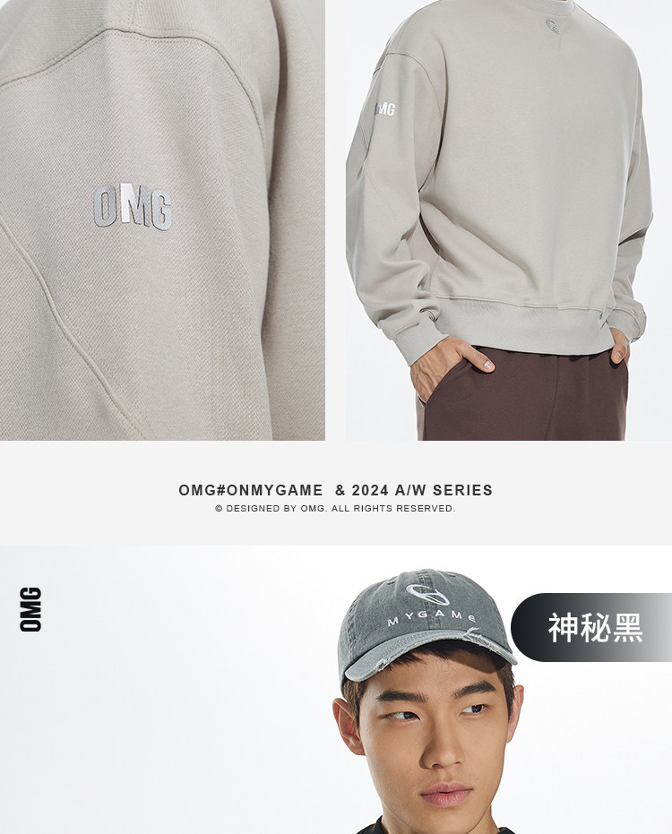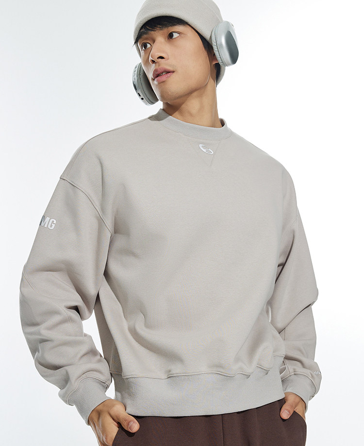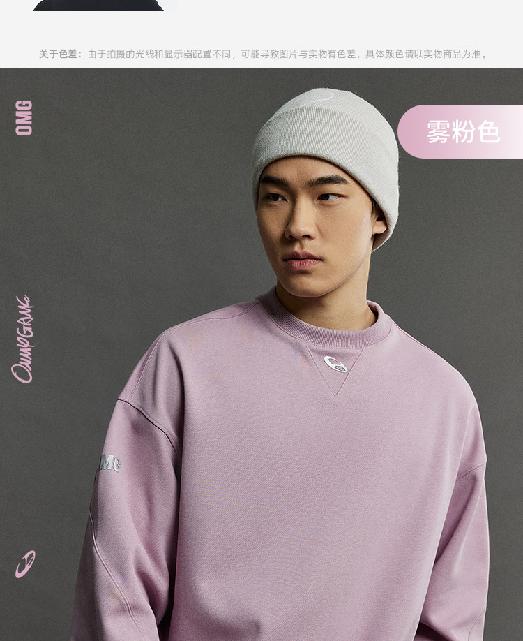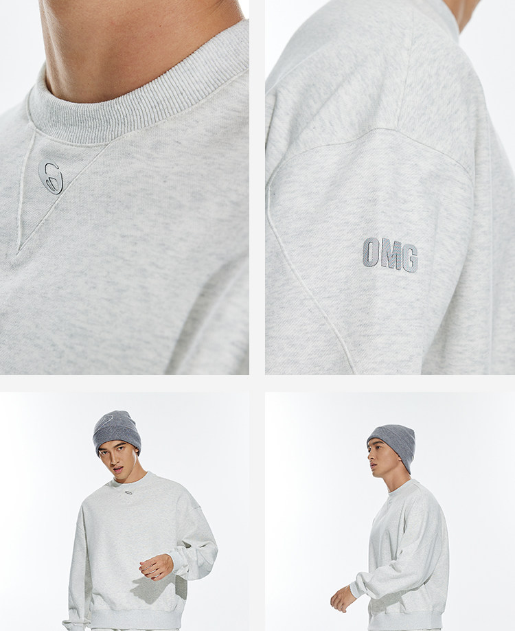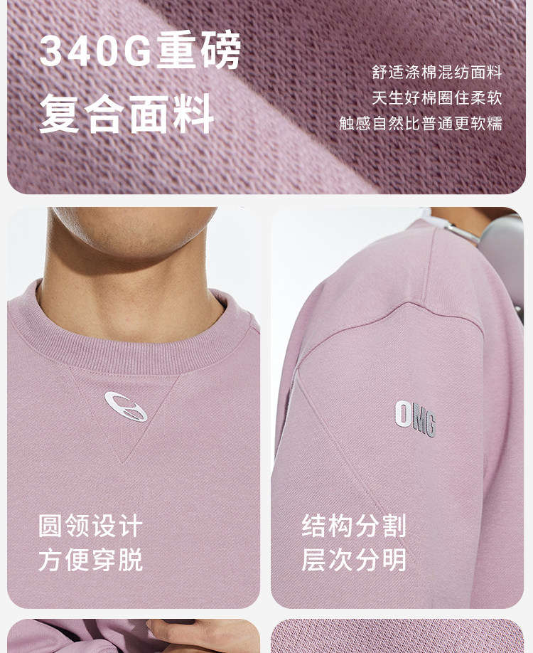OMG运动 【挺阔不起球】圆领印花卫衣春秋季长袖外套上衣套头衫