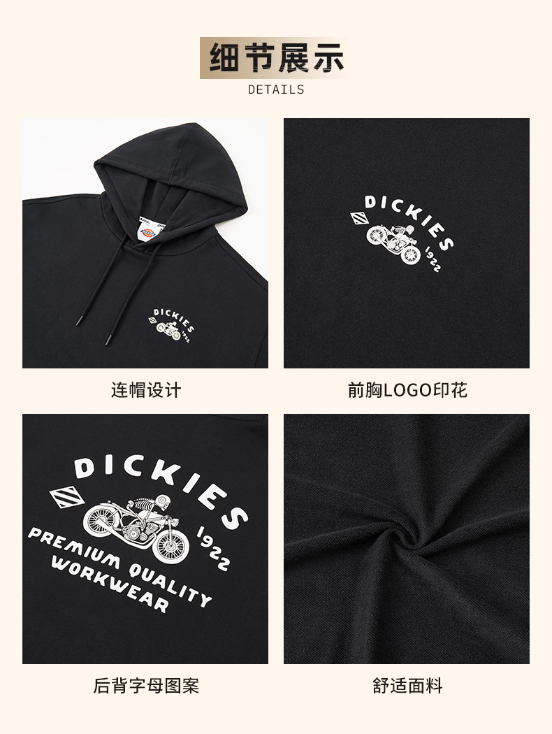 Dickies连帽卫衣美式复古运动休闲宽松百搭情侣款上衣男女同款 DK0A88OH