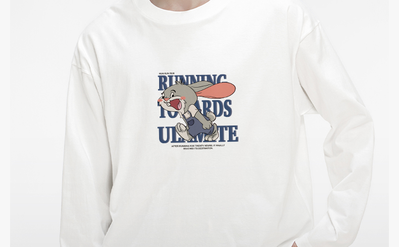 「棉的美学」 萌萌奔跑兔兔印花长袖~秋季可爱休闲印花长袖男女款