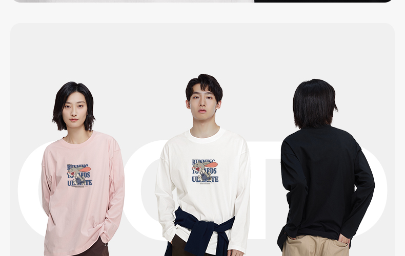「棉的美学」萌趣卡通纯棉长袖T恤新款设计印花情侣同款打底上衣