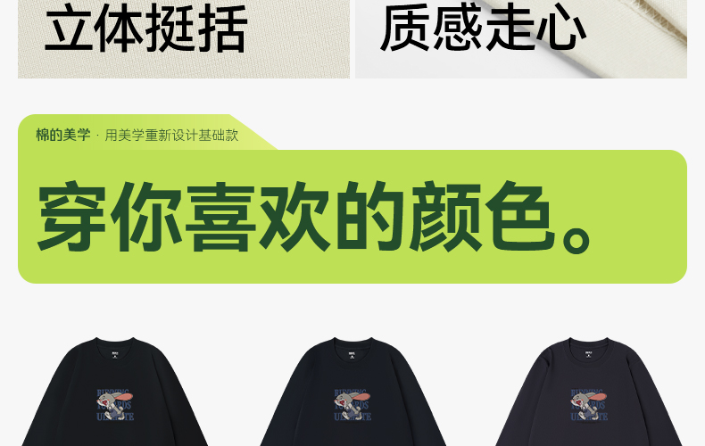 「棉的美学」美式潮流纯棉圆领T恤字母印花小众设计百搭长袖上衣