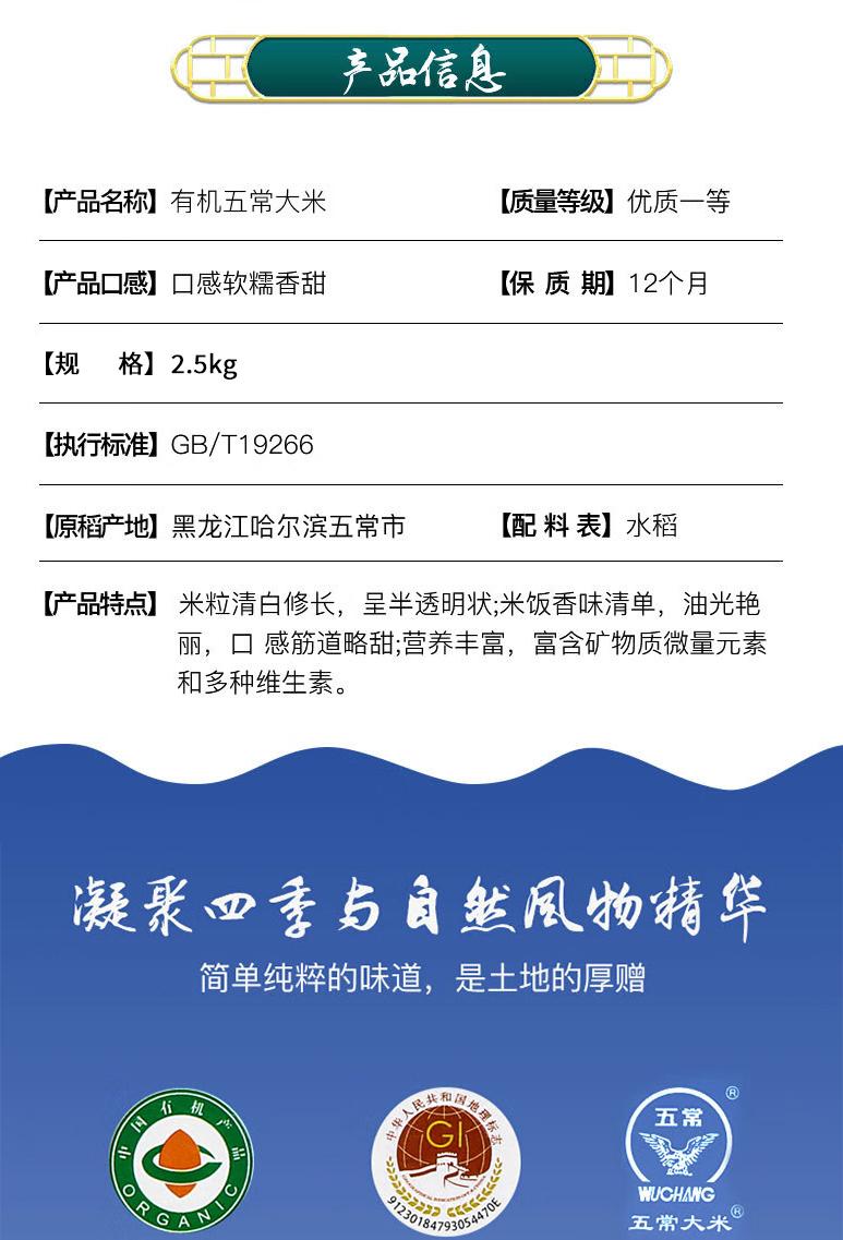 【国安农业出品】信农宜食东北有机五常大米2.5kg(原粮稻花香2号)