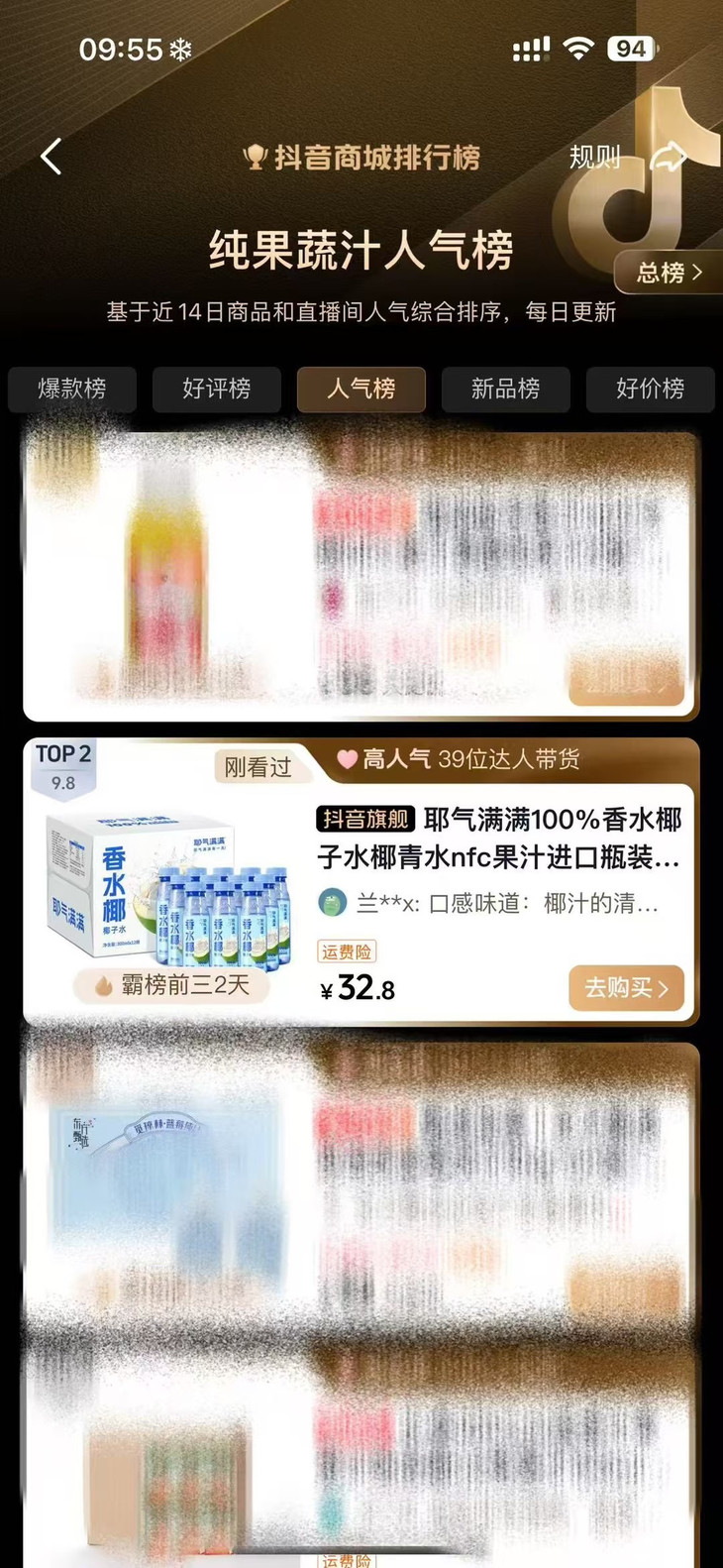 某音商城排行榜 🏅纯果蔬汁人气榜TOP2 🔥🔥霸榜前三!!