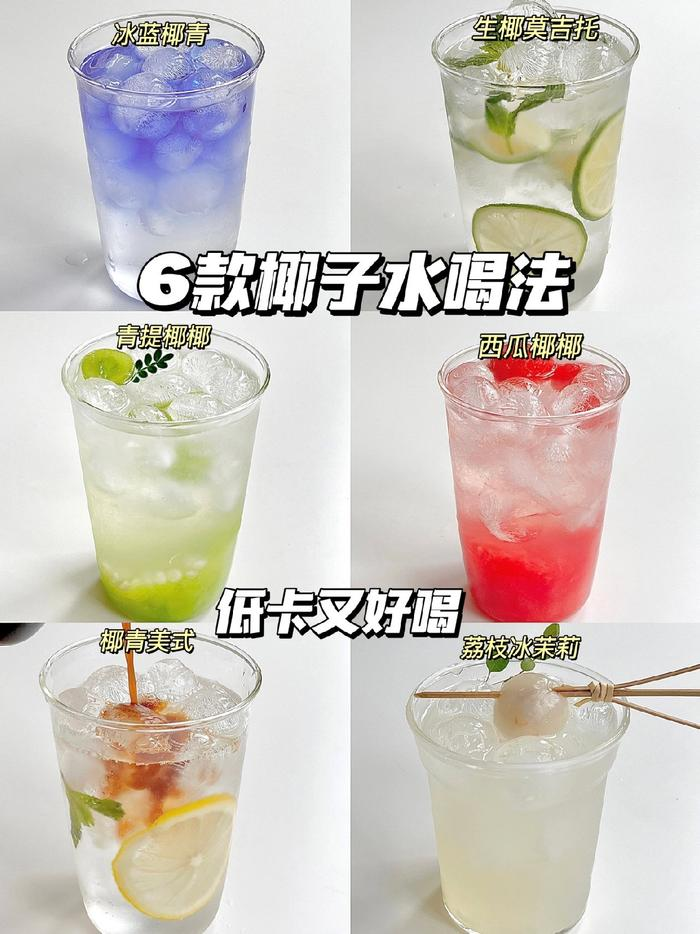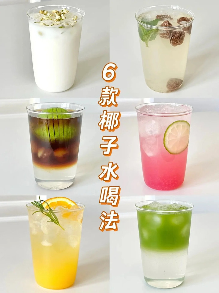 更多【椰子水搭配公式】👇 🍋椰子青柠美式:冰块+整颗青柠+椰子水+美式咖啡液 🍑冰椰桃桃:冰块+青柠片+莓桃汁+椰子水 🥥话梅椰子水:话梅+热水泡10分钟+冰块+椰子水+荷叶 🍊橙香茉莉椰椰:冰块+橙汁+椰子水+茉莉花茶+橙子片+迷迭香 🍃抹茶好喝椰:冰块+椰子水+抹茶液 🍵茉莉冰椰奶:冰块+茉莉花茶+牛奶+椰子水+茉莉花