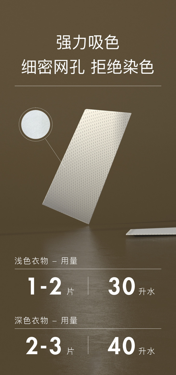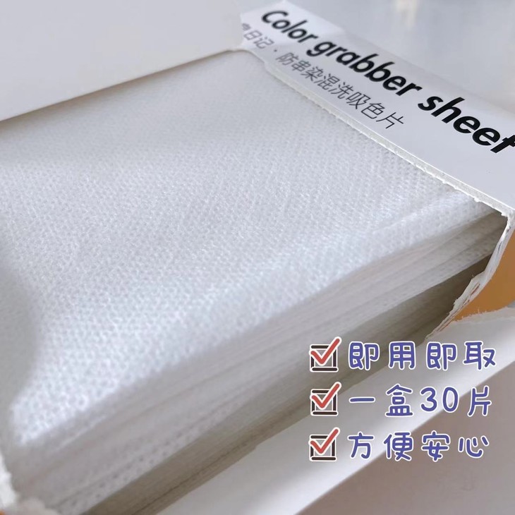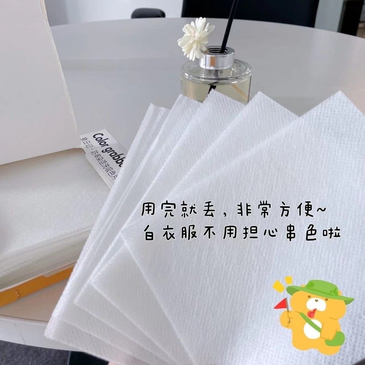 特殊工艺,无纺布材质,强效吸色防染吸收在洗衣过程中衣物的各种染料离子和尘垢有效防止混洗时串色情况的发生