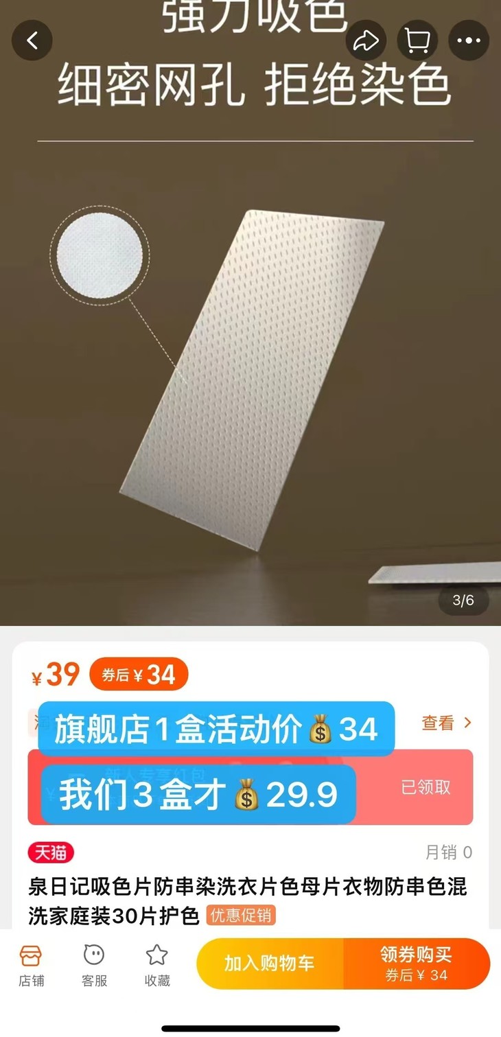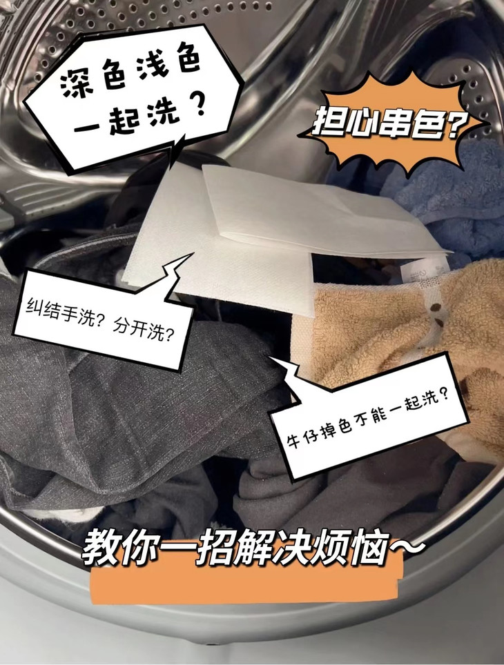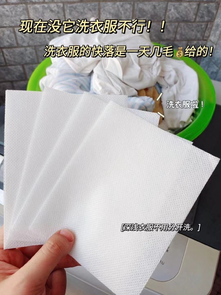 懒人必备!洗衣服再也不用分类了!太哇塞了 没想到居然还有这样的好物 泉日记 · 防串染混洗吸色片 机洗衣物的时候往里面丢两片防止衣物串色~ 洗完的衣服软软的!像新的一样 好用到哭!真的是妈见夸的防串色好物! 很爱穿白色衣服的姐妹 现在再也不用把衣服分类了 懒人真的纯纯爱住了🌝 快快囤起来,一定会让你感觉相见恨晚 旗舰店1盒活动34