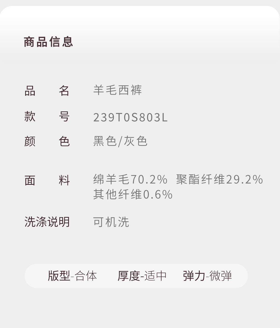 【铂金一号】70羊毛免腰带抗皱高端西裤239T0S803L