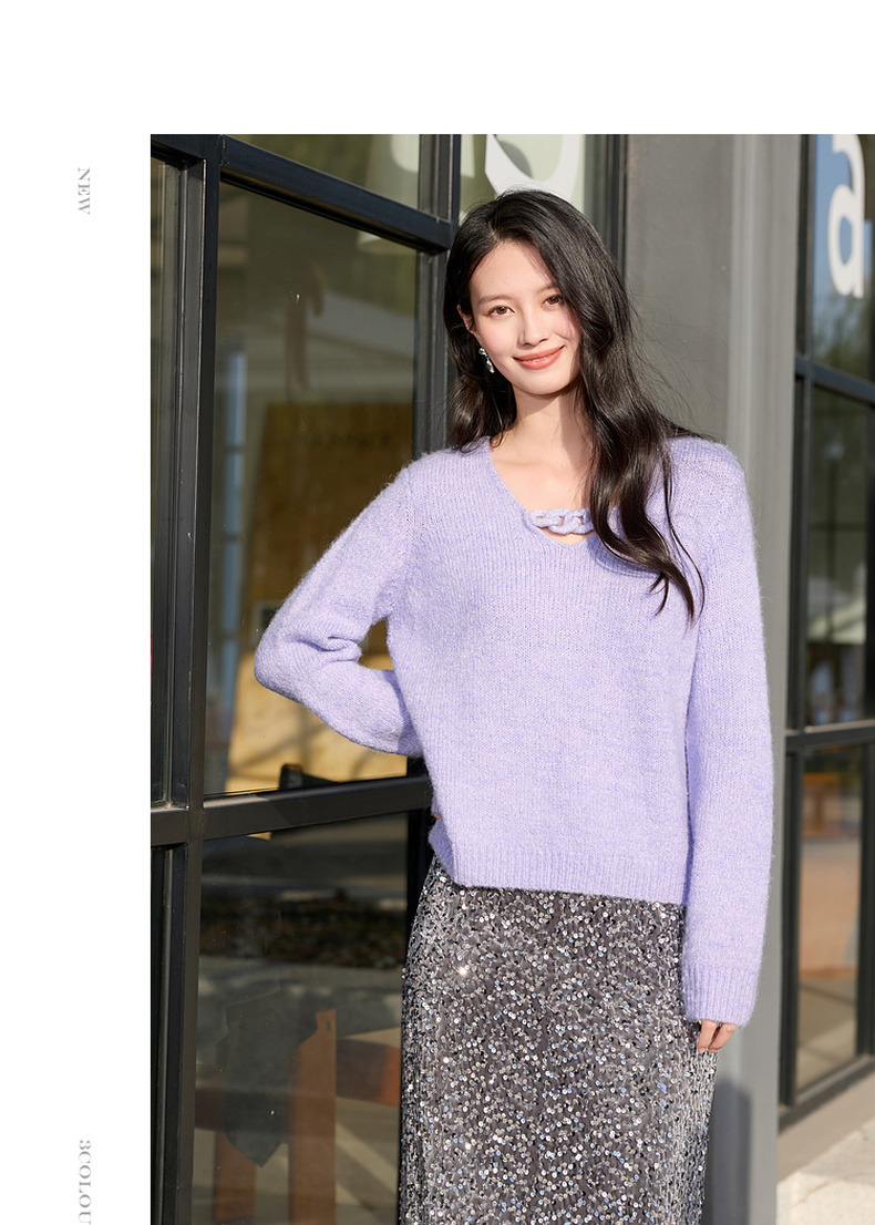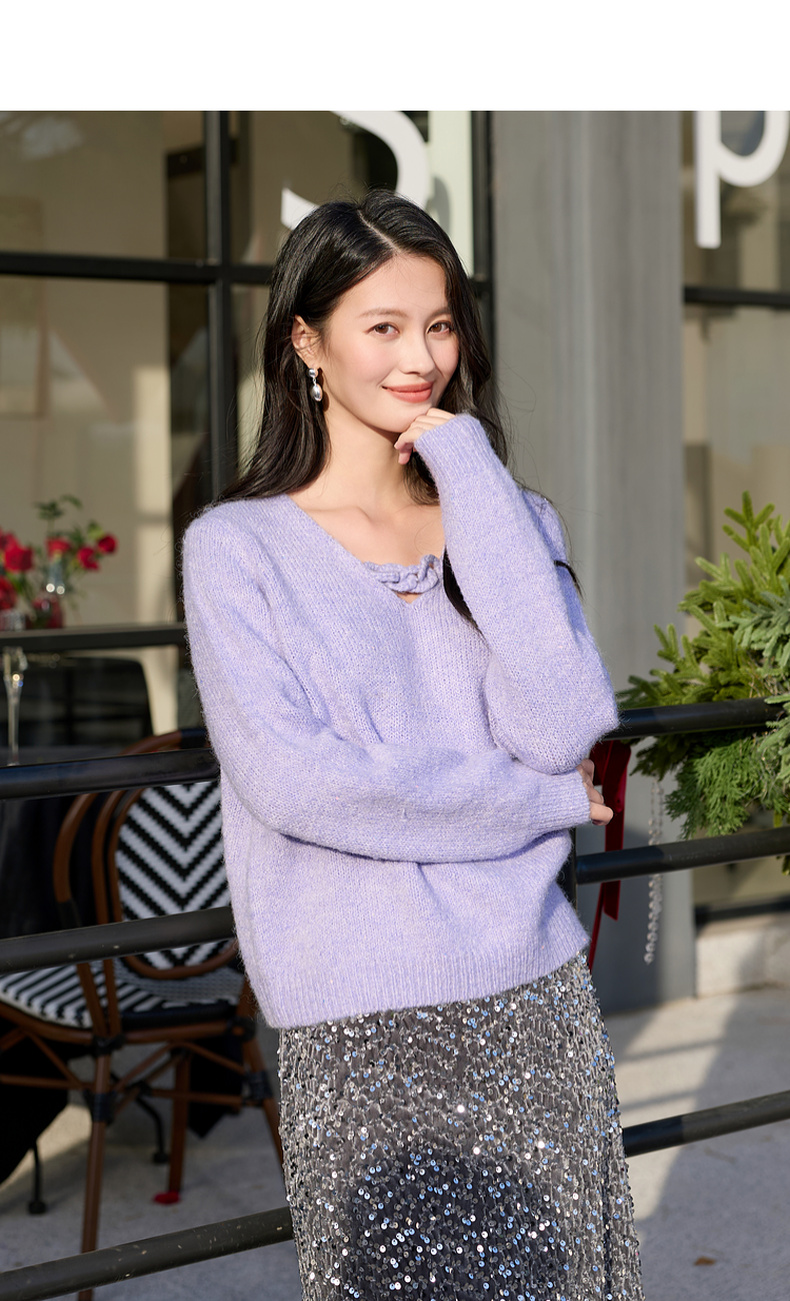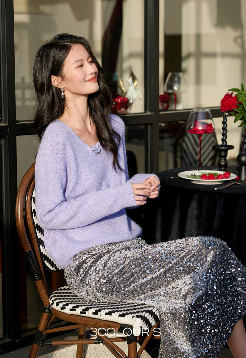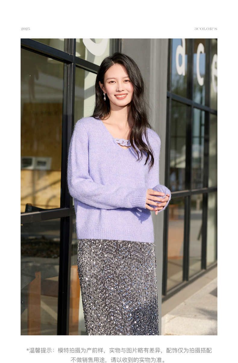 三彩2026春季新款轻奢V领针织衫新年毛衫套头宽松长袖S