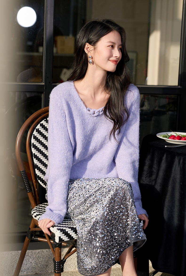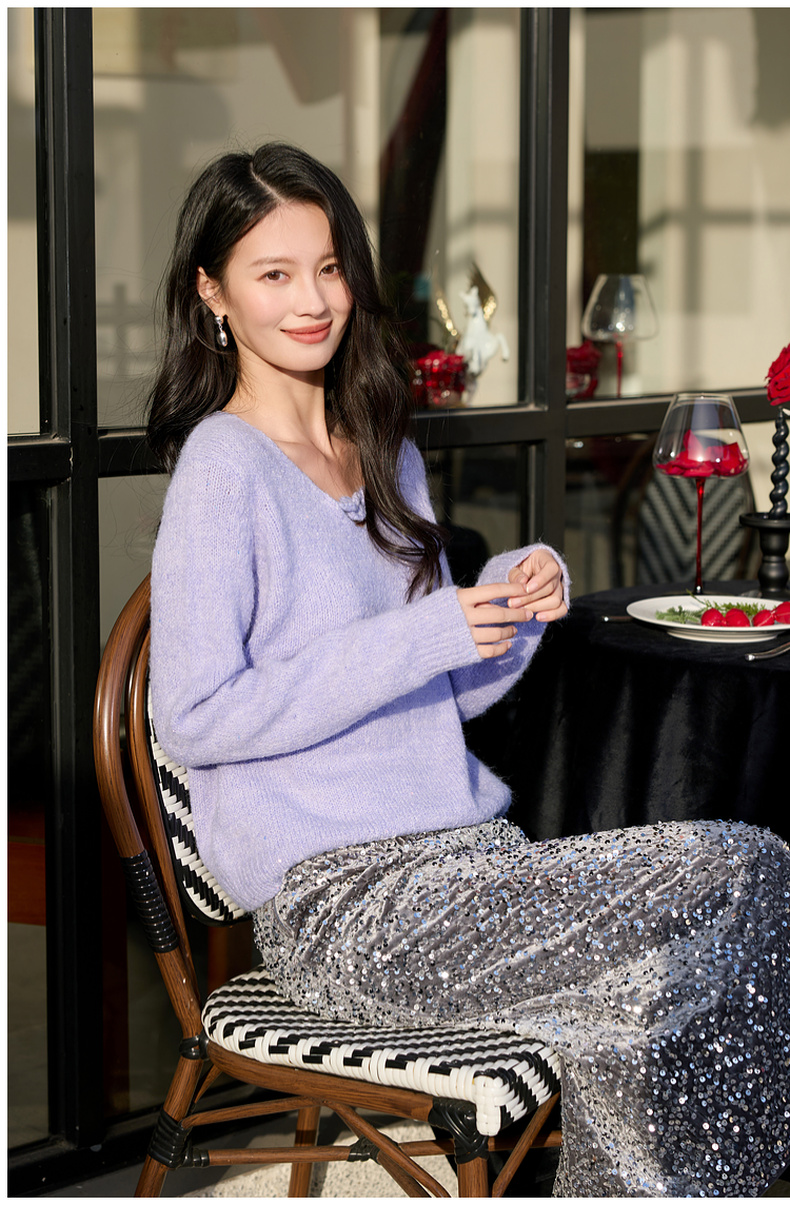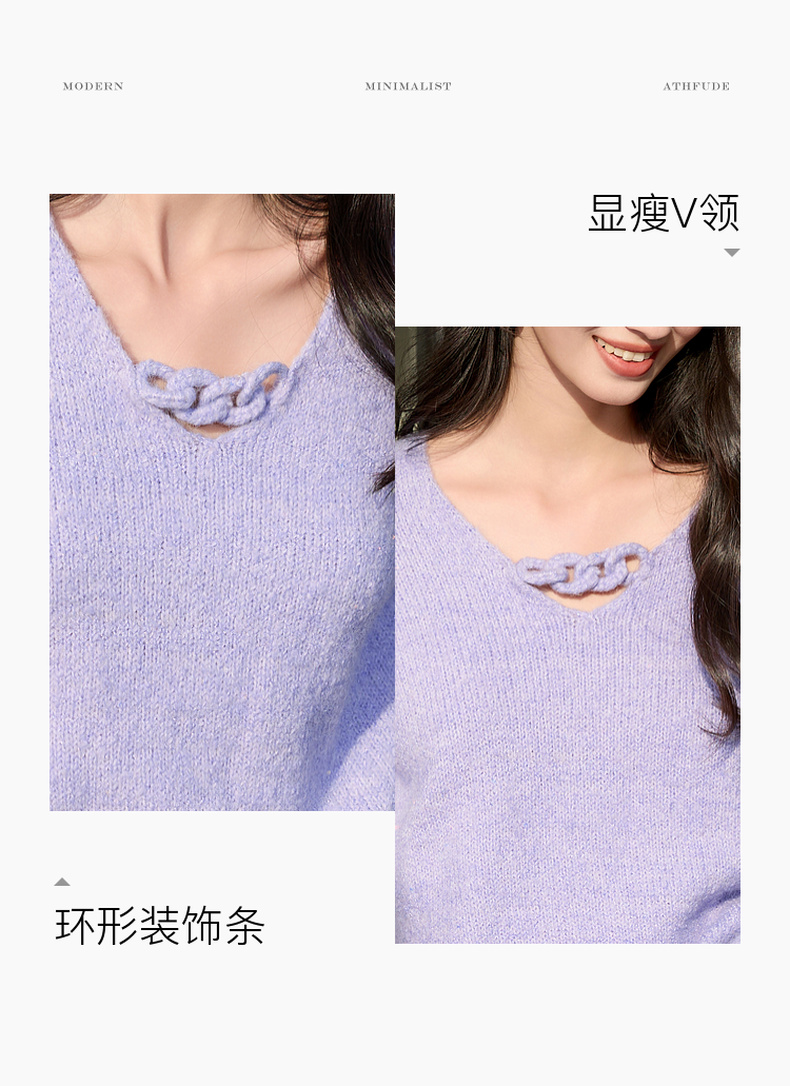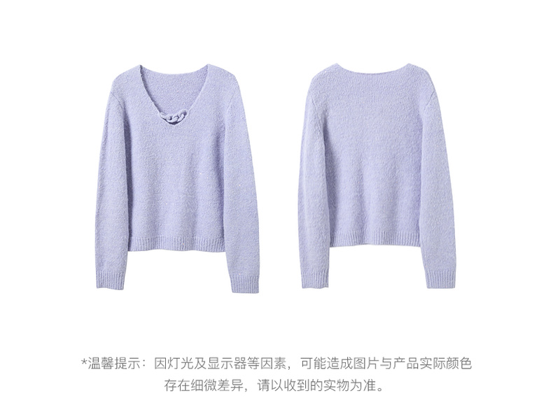 三彩2026春季新款轻奢V领针织衫新年毛衫套头宽松长袖S