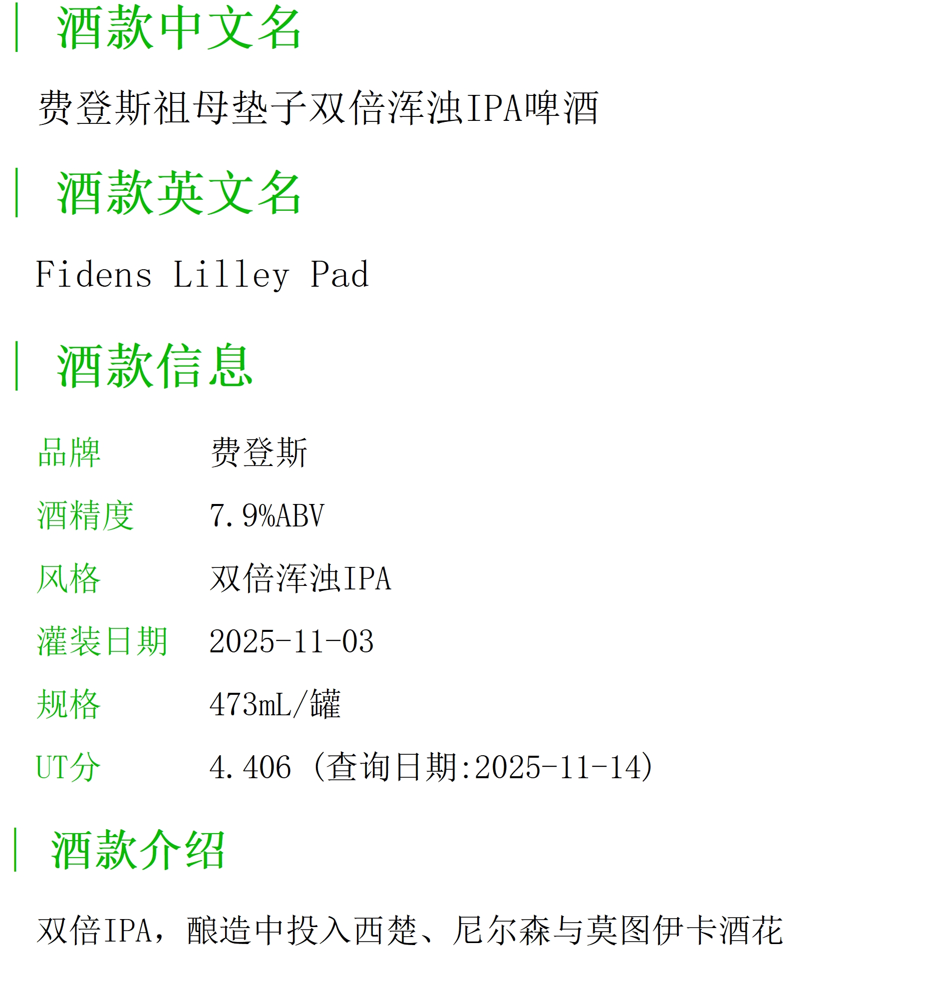费登斯祖母垫子双倍浑浊IPA啤酒