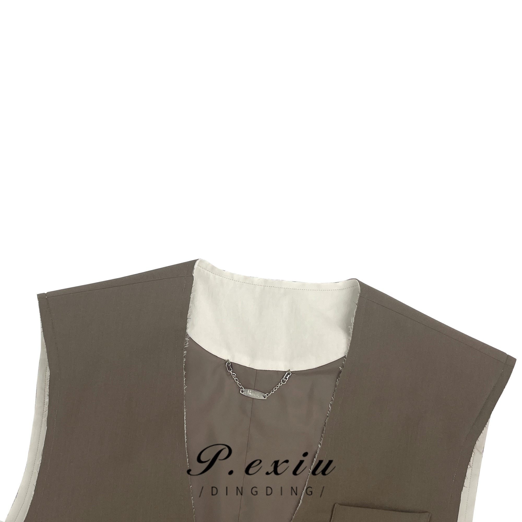 03-4潘依绣丁丁宠粉PanYiXiu/潘依绣【夏至未至】韩版V领无袖宽松简约西装马甲 SH2398