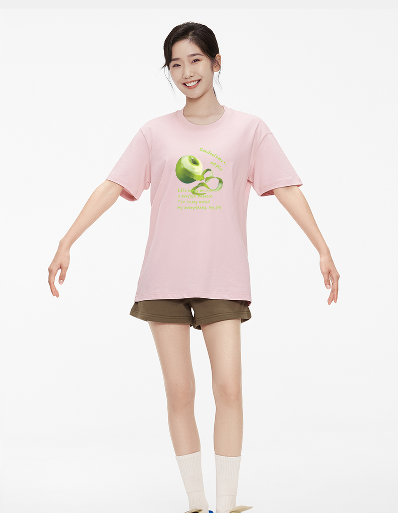 「棉的美学」纯棉重磅青苹果印花T恤小众设计感休闲百搭情侣上衣
