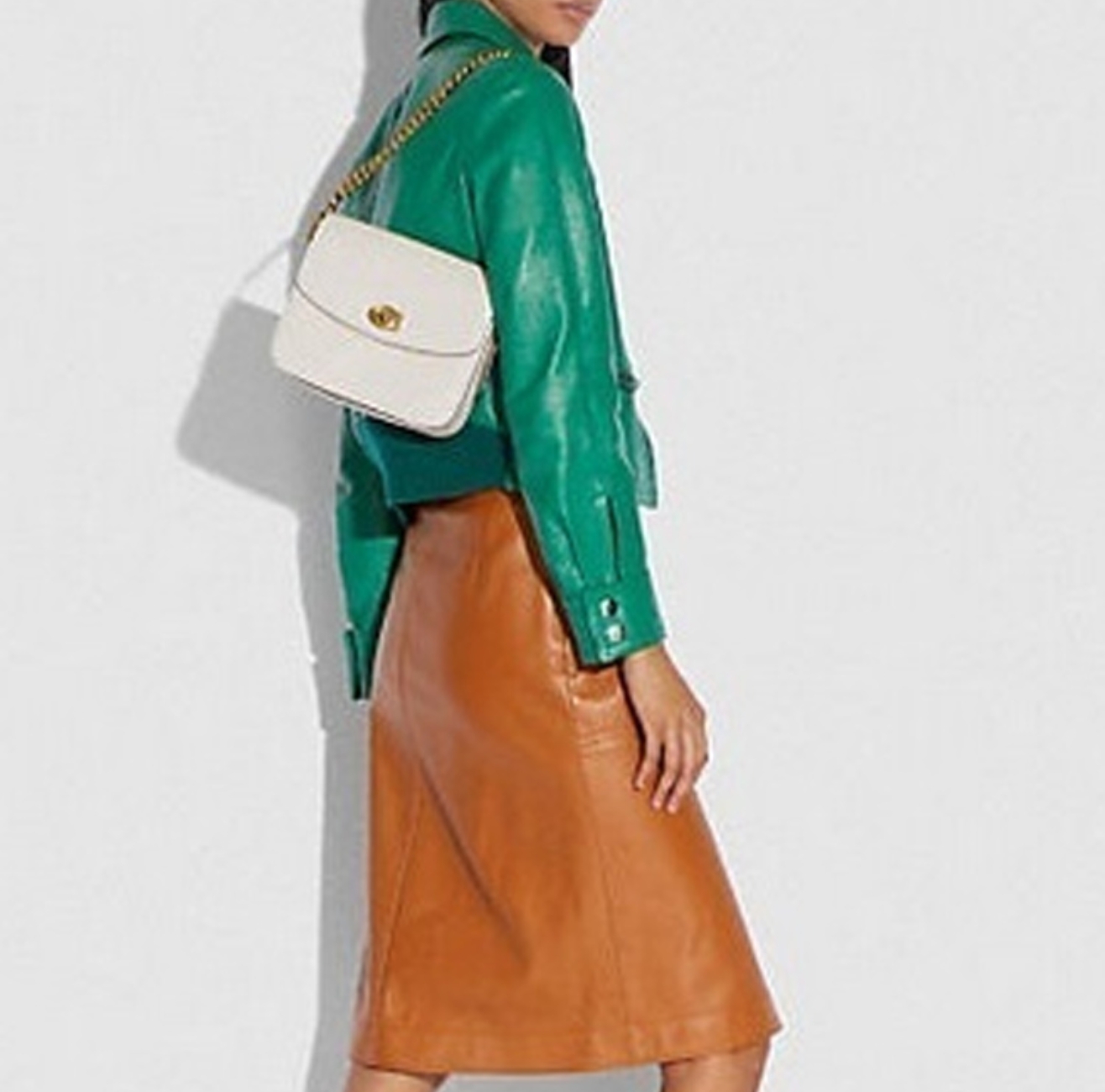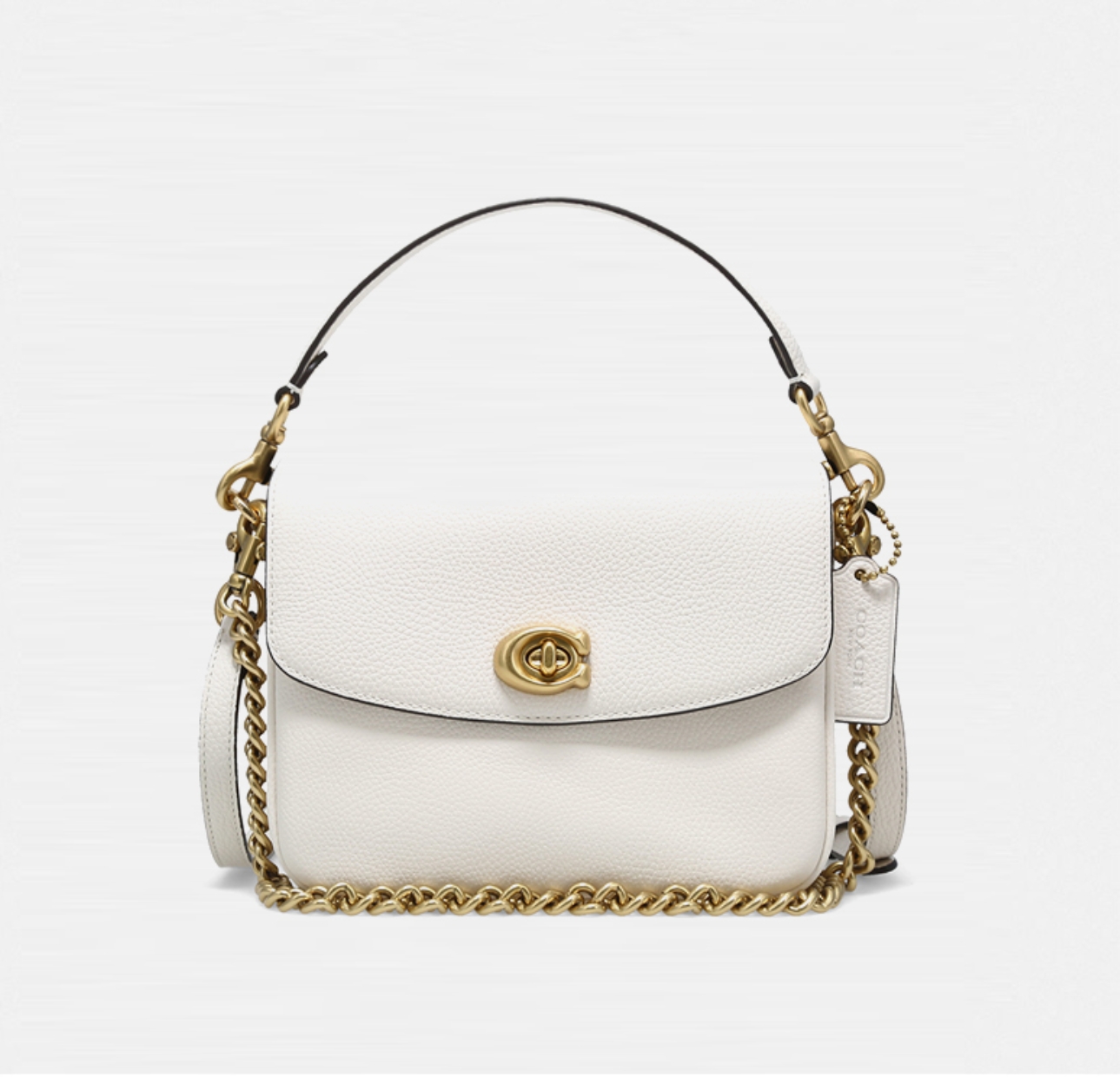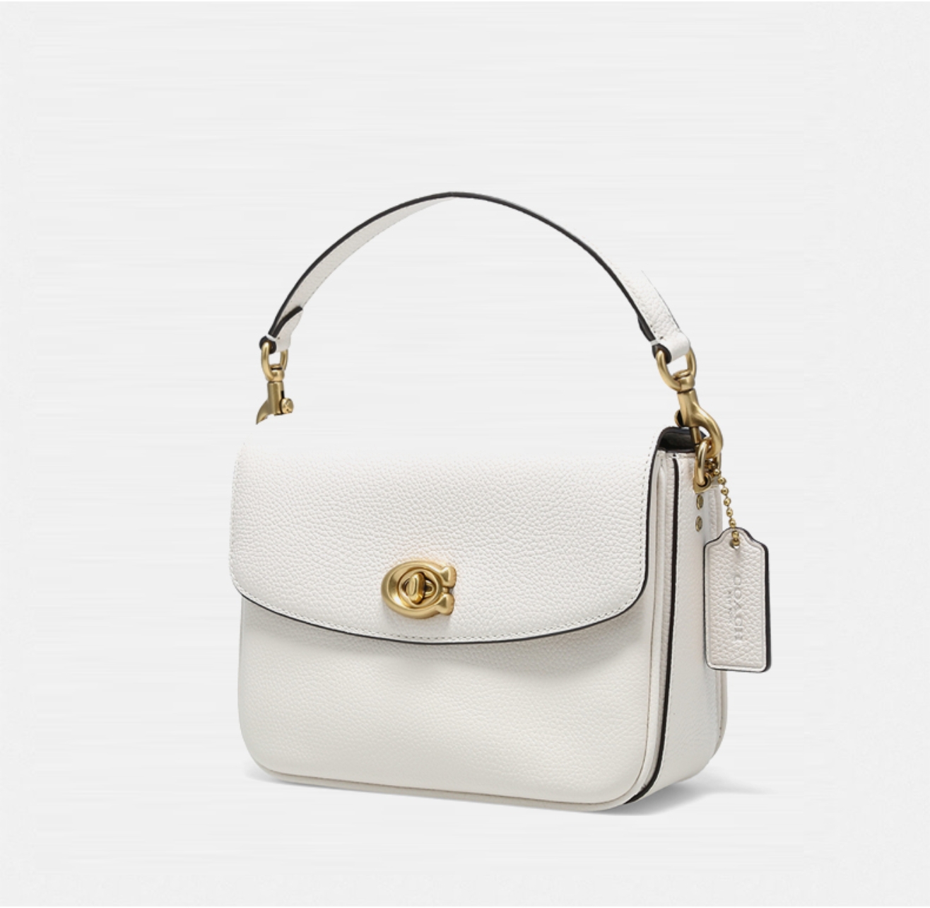 COACH蔻驰 Cassie 19 C扣翻盖 鹅卵石纹皮革 邮差包手提单肩斜挎包 小号 女款 白色