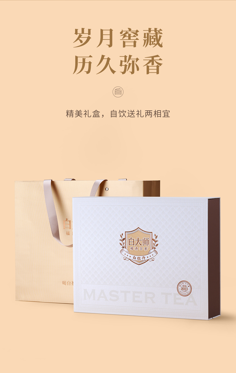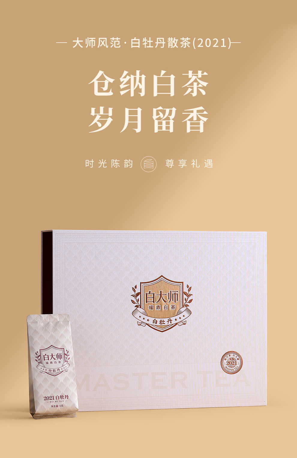 白大师白茶茶叶正宗福鼎白茶2021年大师风范白牡丹散茶送礼礼盒