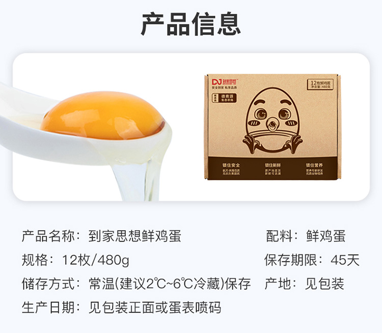 【到家思想】鲜鸡蛋12枚/盒-顺丰