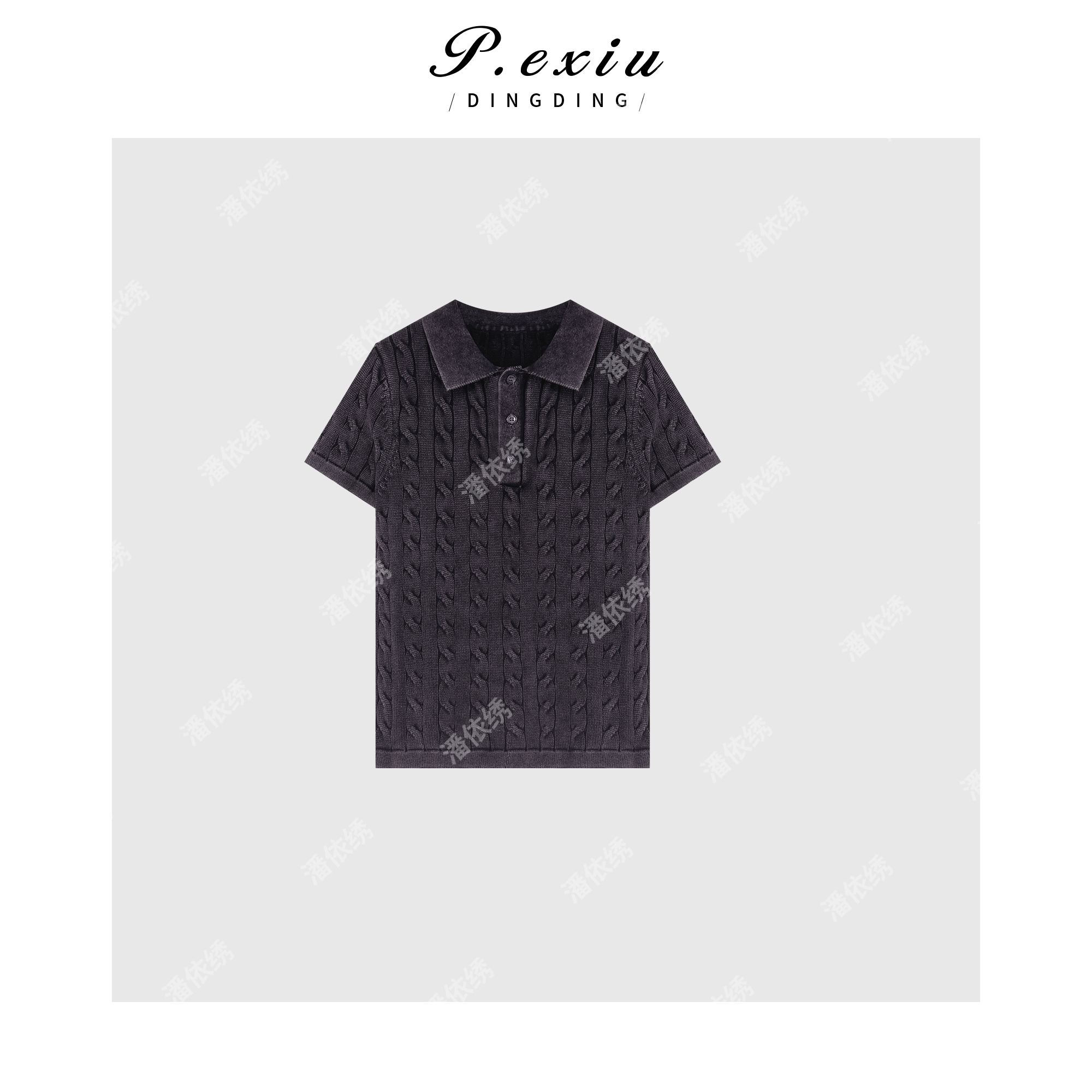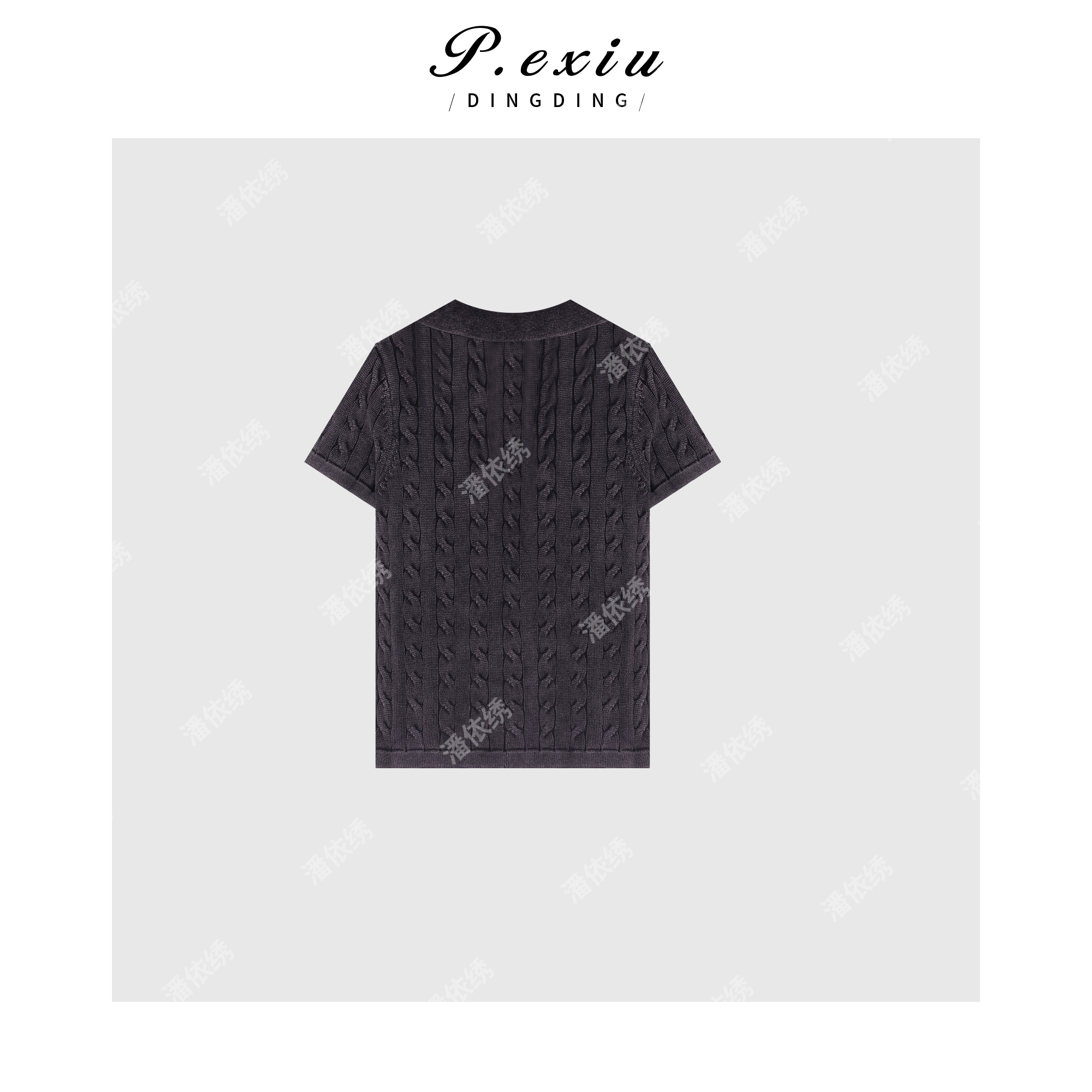 04-3潘依绣丁丁宠粉PanYiXiu/潘依绣100%棉经典款绞花编结设计Polo领针织衫 Z0310