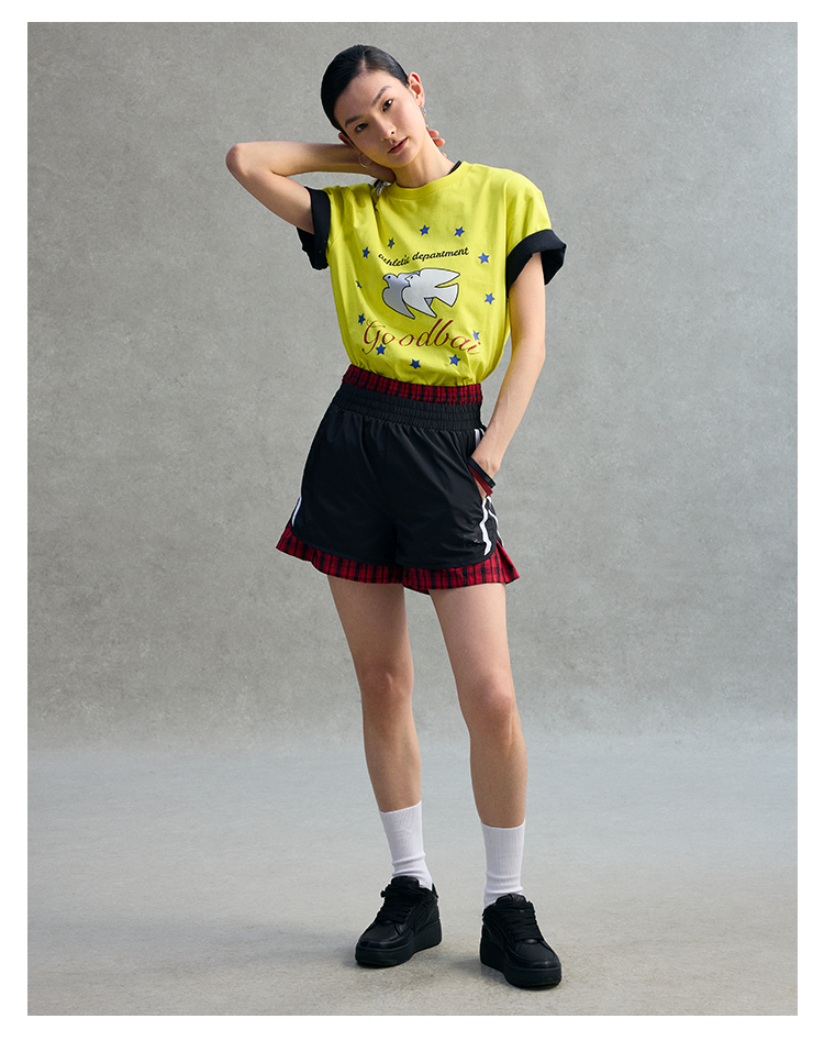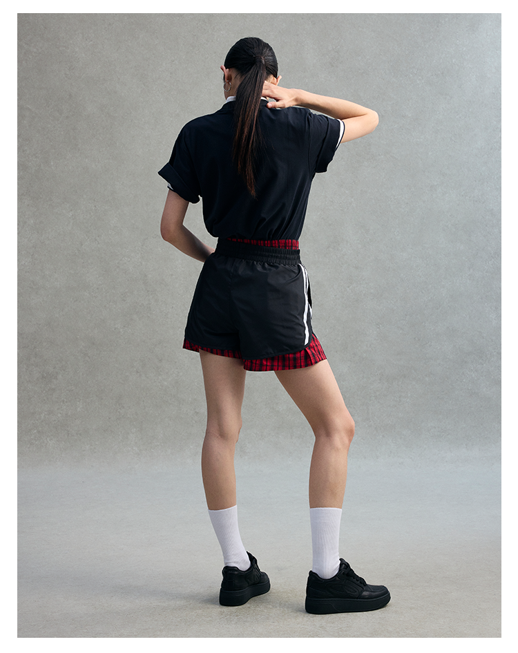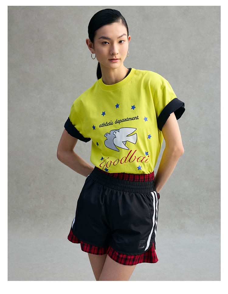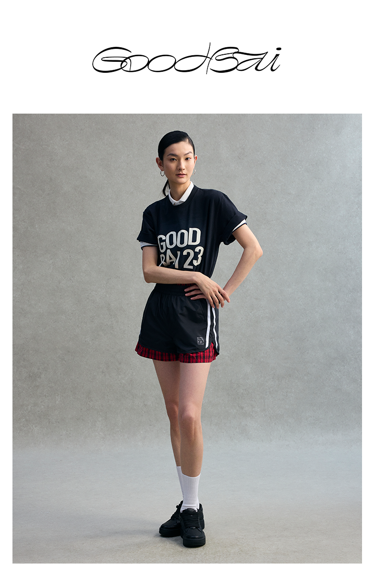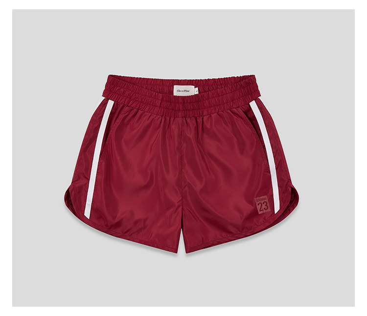GOODBAI 23 logo编号印花撞色织带收腰薄款短裤