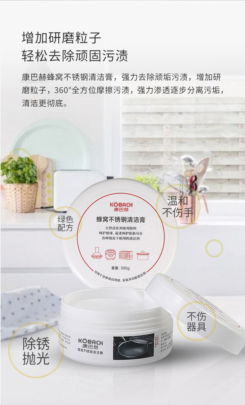 【50积分+19.9元】康巴赫 白盒不锈钢多功能清洁膏 300g/盒 气味温和