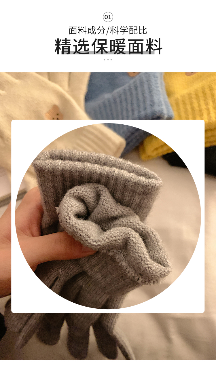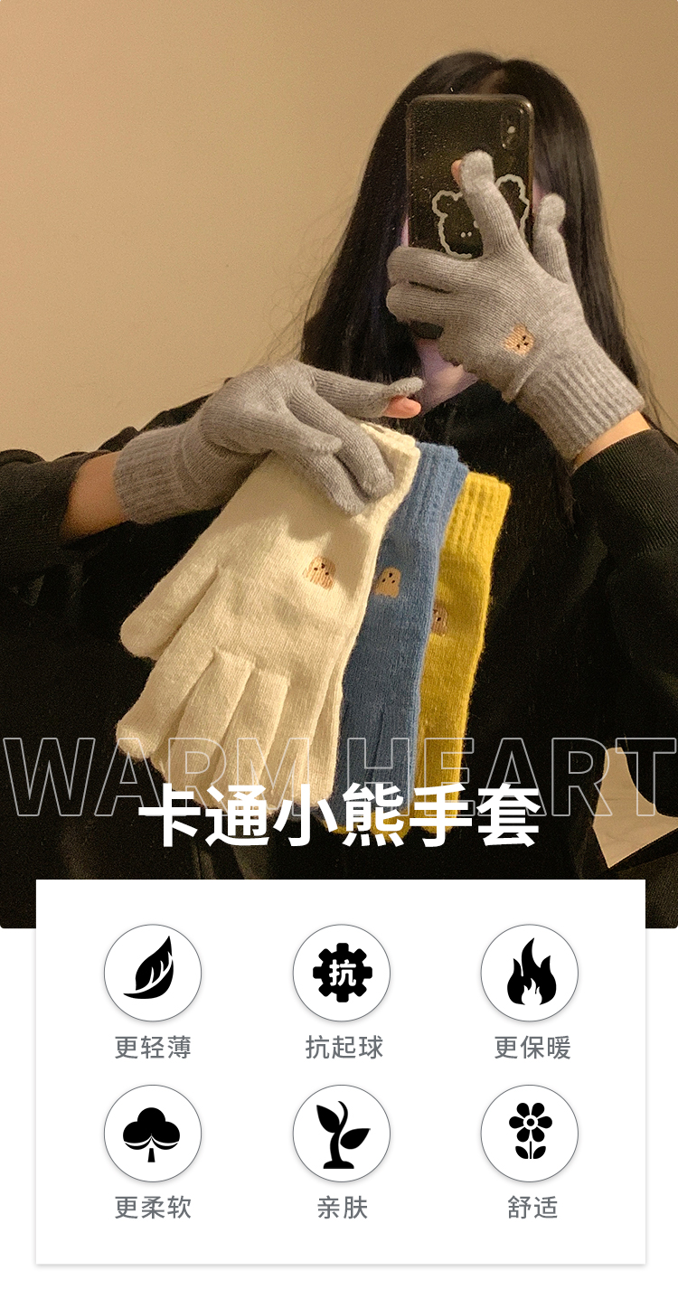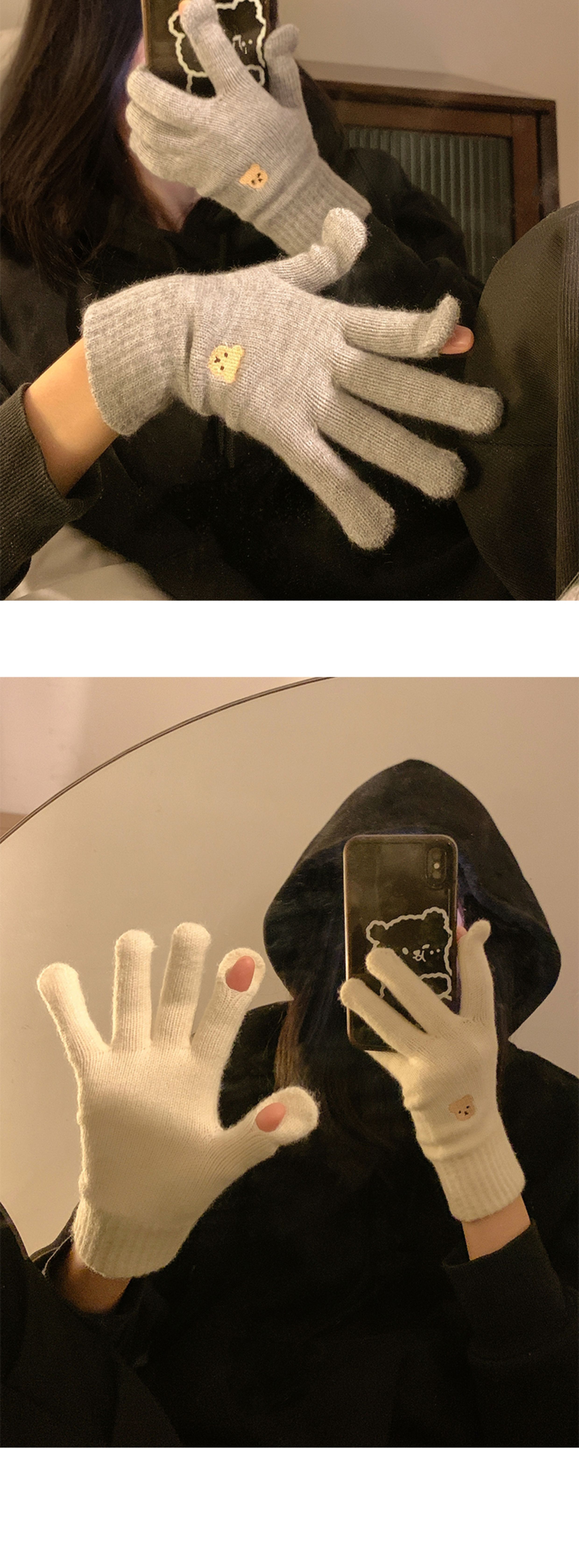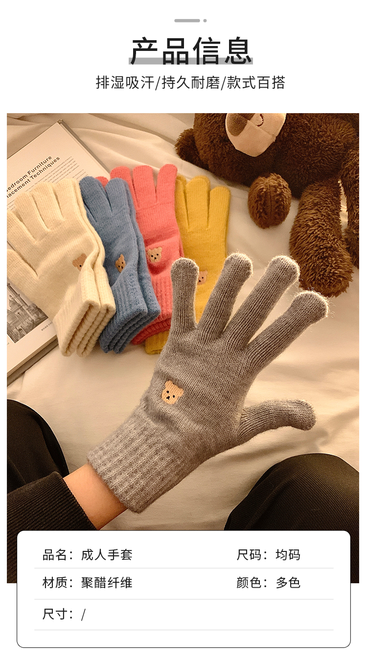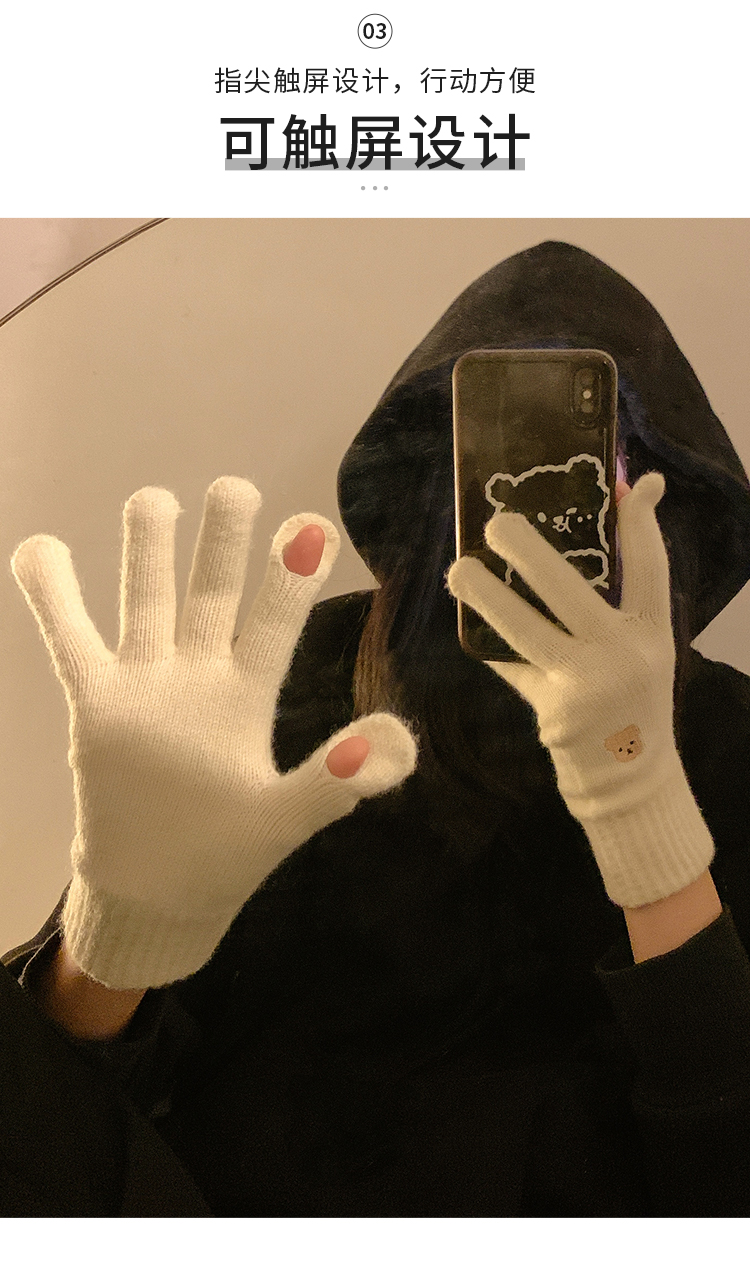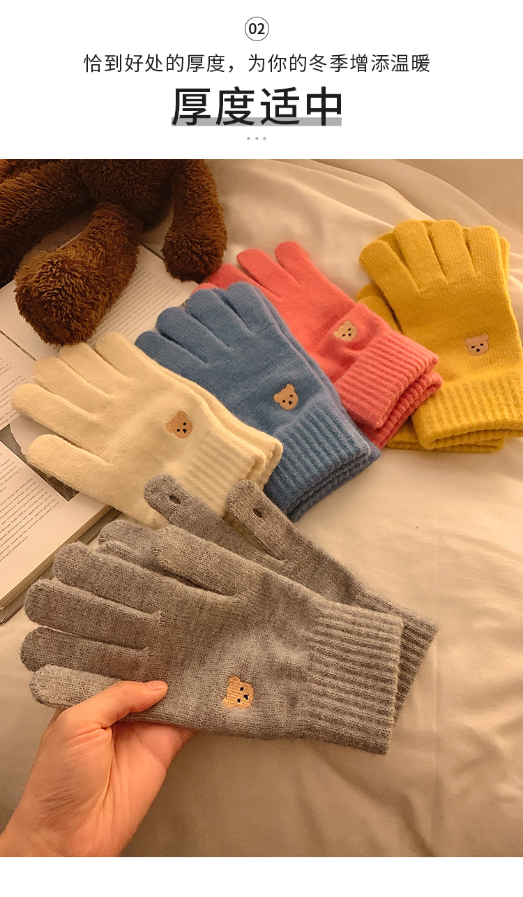 鹿向南ALXNAN 刺绣可爱小熊五指针织手套
