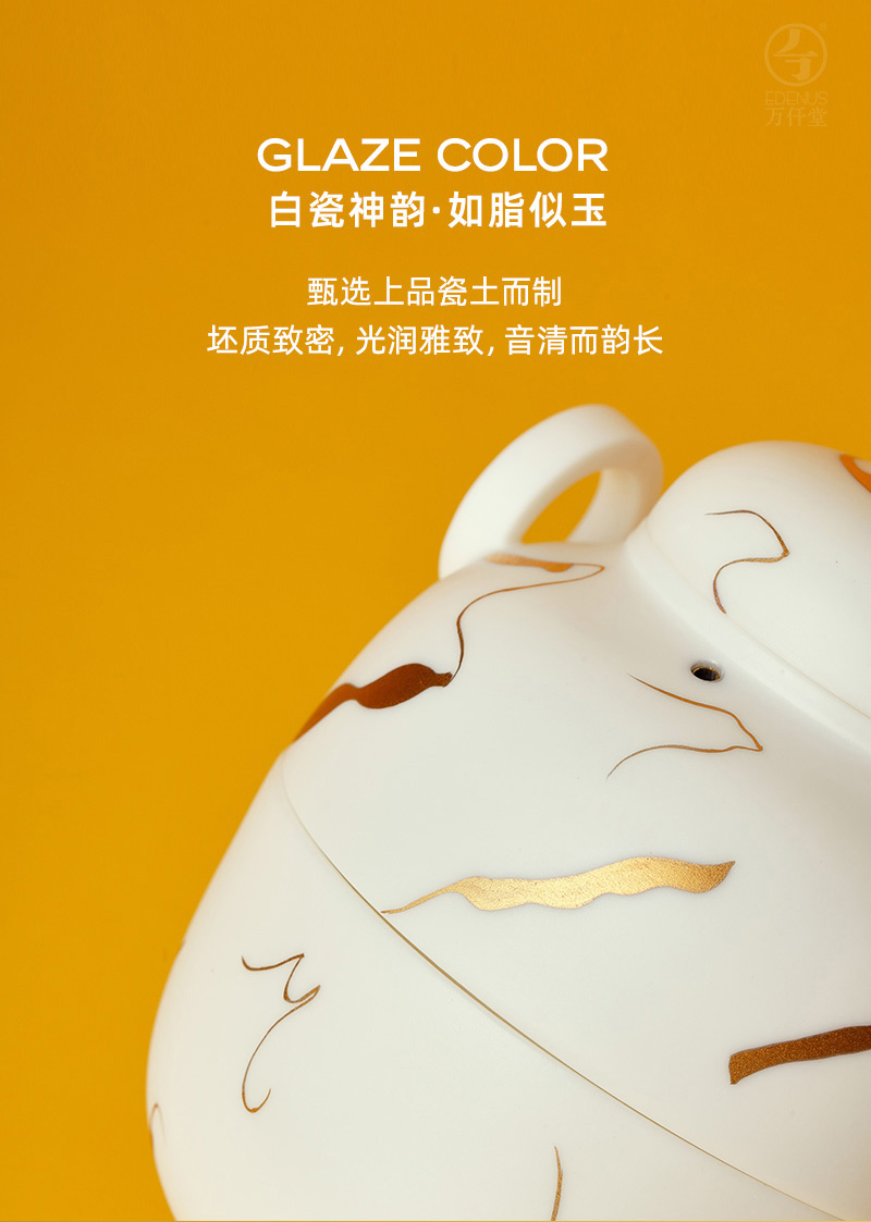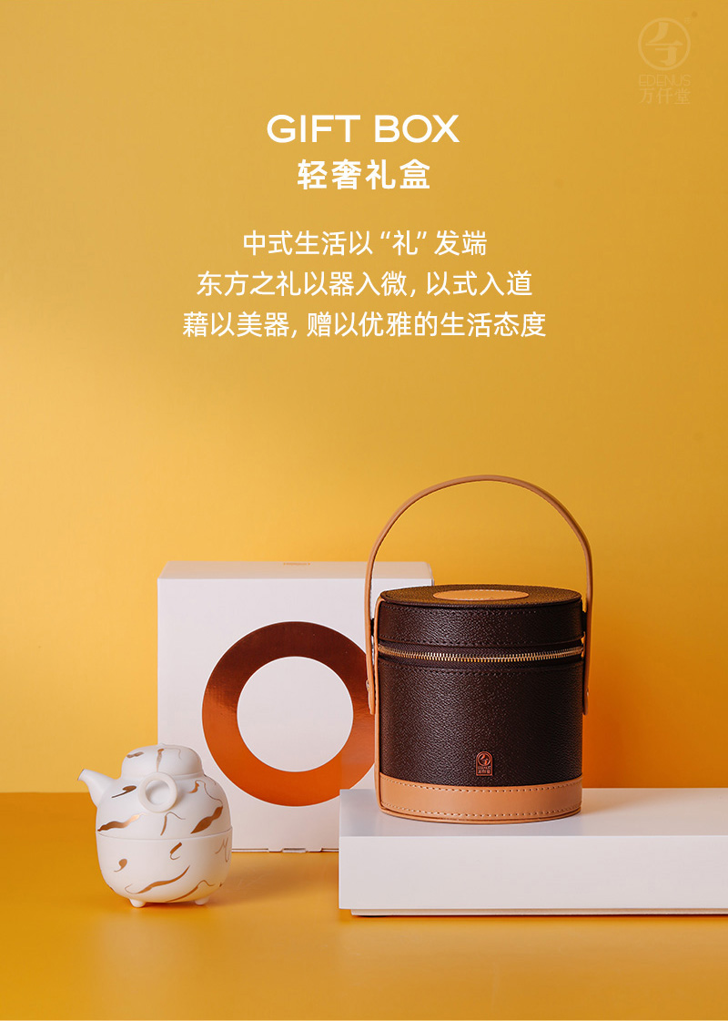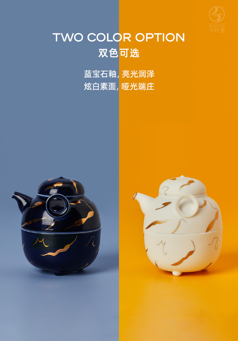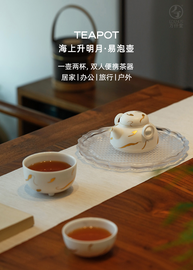 万仟堂 | 海上升明月·易泡壶 旅行茶具套装 便携快客杯 一壶两杯陶瓷功夫茶具 礼盒套装 海上升明月 不建议刻字 炫白素面