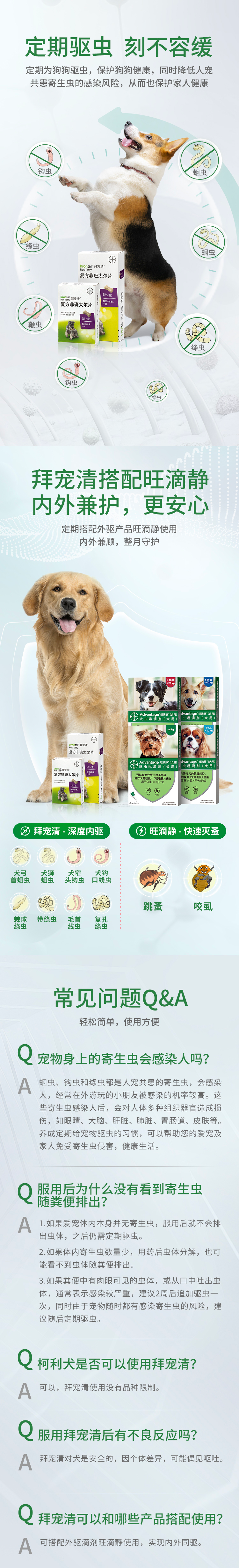 【犬用体内外驱】拜宠清内驱6片+拜宠爽外驱4支狗狗驱虫药除蛔虫